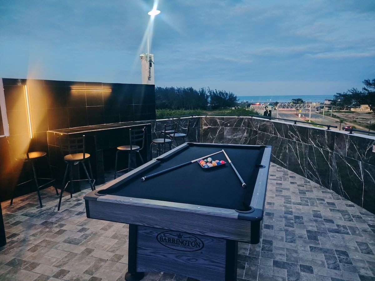 La mejor ubicación para playa Miramar, completamente nuevo, con acabados de alta calidad cuenta con 2 camas Queen calidad premium, Internet de alta velocidad, todo a estrenar, con lo ideal para tu estancia, ubicado en la avenida principal de Ciudad Madero, con amplio estacionamiento seguro. No te pierdas unas increíbles vacaciones en un lugar céntrico. A solo 5 minutos de la playa, escolleras, restaurantes de maricos. Ubicado en avenida importante de cd. madero. Estacionamiento incluido.
