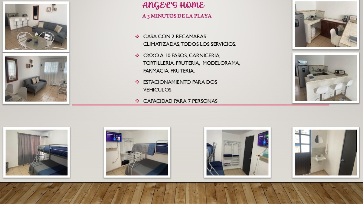 "¡Bienvenidos a nuestra encantadora casa cerca de la playa! Nuestra propiedad se encuentra en un vecindario seguro y familiar. Con tres acogedoras habitaciones, un baño y medio, sala de estar con pantalla, comedor y cocina, wifi, area de trabajo, climas tipo mini split, recamara principal con pantalla y acceso al balcon, area de estacionamiento para dos coches, amplio patio, cuarto de lavado, agua caliente, camaras de seguridad en exterior y sistema de alarma. Vengan y disfruten en familia!".
