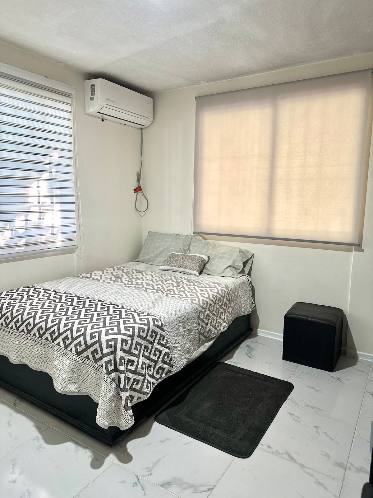 Casa Independiente con buena ubicación, a dos cuadras de la ave. principal que te lleva viajando en coche al centro de Cd. Madero en 5 min, a la Playa Miramar en 15 min, al centro Histórico de Tampico en 10 min, a la Laguna del Carpintero en 7 min. Cuenta con cochera techada, una recamara con baño completo, cama matrimonial, Mini Split, área de trabajo, internet y TV Smart 43”. Sala comedor con abanicos de cielo y un sofá cama con opción para dos huéspedes adicionales, cocina y lavadora.