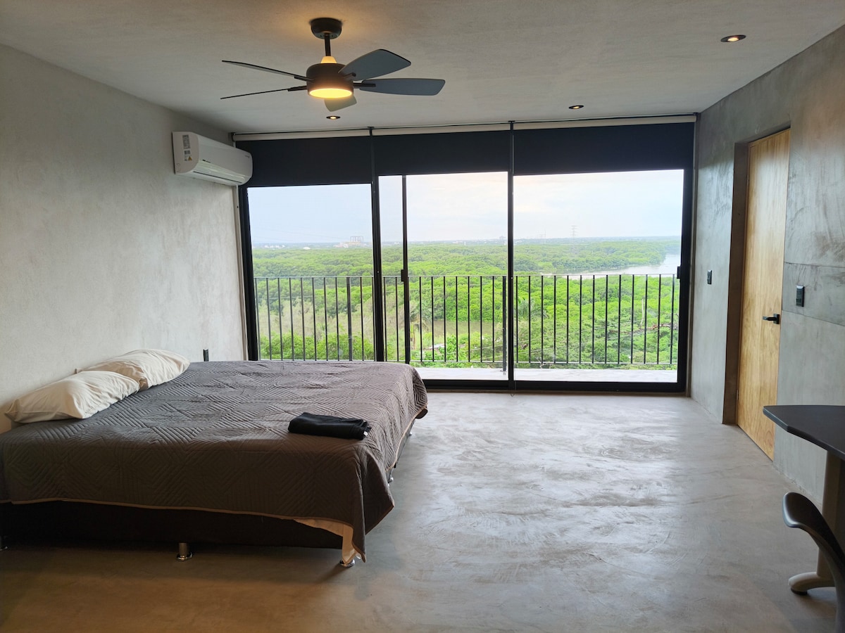 Acogedor departamento con cama matrimonial, baño privado con regadera, aire acondicionado y ventilador. Incluye WiFi, TV con servicios de streaming, refrigerador y trastes básicos para comer. Ideal para estancias cortas o de trabajo. Servicios de agua, luz e internet incluidos para que disfrutes sin preocupaciones. Espacio cómodo, funcional y bien ubicado. A 10 minutos de la laguna del carpintero y centro de espectáculos , a 20 minutos del centro de Tampico y a 30 minutos a la playa. Facturamos