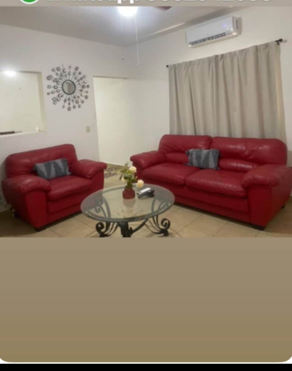 Departamento independiente, colchón King Sice, cocina integral, refrigerador, parrilla doble, campana extractora, microondas, cafetera, tostador, licuadora, vajilla, sartenes, cubietos, botellón Ciel, sal, pimienta, aceite, café, azúcar y leche. Tabla, cuchillos, secadores, plancha y burrito. Sala TV-IZZI, A/C, WIFI, baño completo con agua fría y caliente, toallas, secadora de pelo, papel sanitario y de cocina, shampoo p/pelo, cuerpo y manos, artículos de limpieza, cochera techada y cerrada.