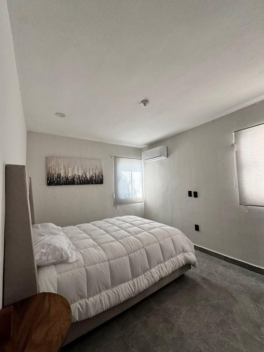 Enjoy this beautiful and centrally located apartment just a few blocks from downtown Madero, 10 minutes from Miramar Beach, downtown Tampico, and Altama. The apartment is on the second floor and features a smart lock, security cameras, parking, a spacious elevator, 3 bedrooms (2 with queen beds and 1 with a double bed), 2 full bathrooms, a living room, dining room, kitchen with a bar, 2 small pets are allowed, internet access, hot water, air conditioning, and is fully equipped.