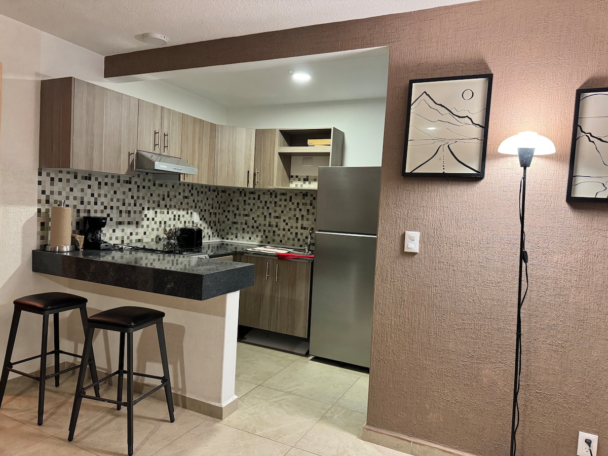 Welcome to our brand new, fully equipped apartment! The perfect place for a peaceful, cosy, and comfortable stay for groups of up to five people. Our prime location puts you just minutes away from CDMX International Airport, Foro Sol, Hermanos Rodríguez Autodrome, Palacio de los Deportes, and Diablos Rojos Stadium. With 24/7 surveillance, shared parking, an elevator, and all the amenities for a pleasant stay. Book today!