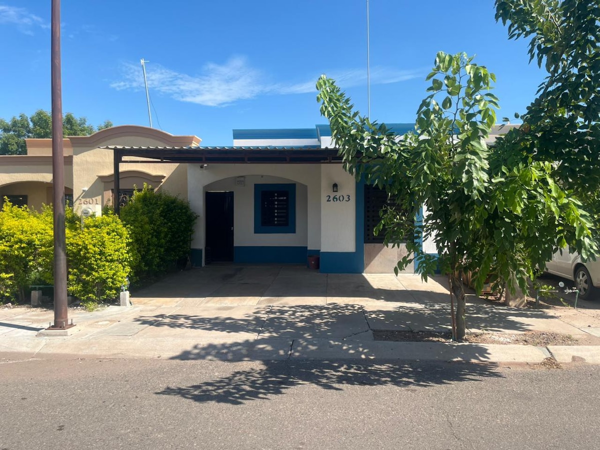 **Facturación disponible**. Relájate con toda la familia en este alojamiento donde la tranquilidad se respira. Casa privada a 10 minutos de Constellation y 5 minutos de ITSON centro. 10 minutos IMSS, 10 minutos ITSON Nainari. Casi frente a empresa GAMESA. A solo 15 minutos del AEROPUERTO.