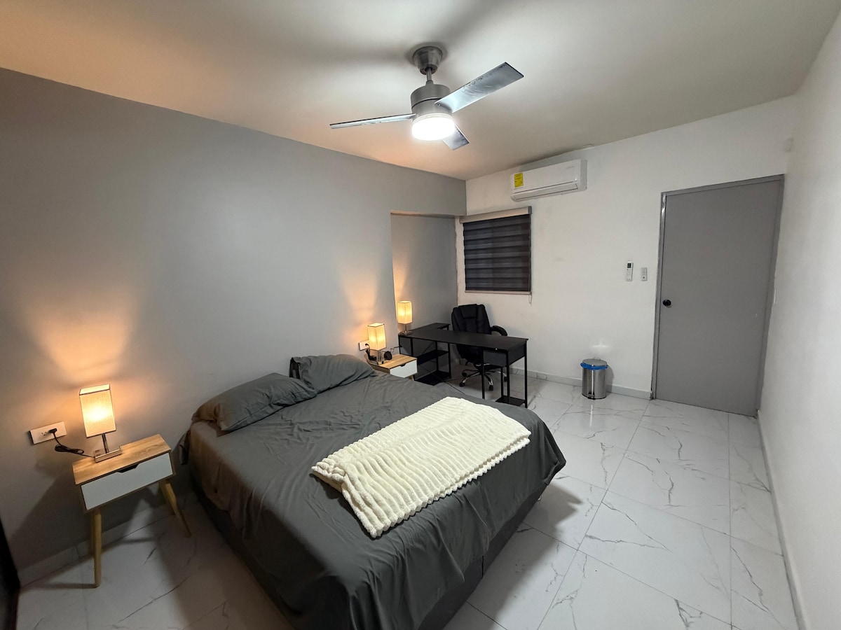 En Casa Blanca, hogar cálido, donde se puede descansar y trabajar en plena tranquilidad, está muy bien ubicado, cómodo y con todo lo necesario. OXXO cercano, parque, y muchos lugares para comer, sushi, tacos, dogos, antojitos mex. todo caminando en menos de 10 min. rutas de transporte muy cercanas. La refrigeración es algo característico, tenemos con 4 ton. repartidas 2ton sala y cocina, 1ton en cada habitación. Pantalla en la hab principal con fire tv y los servicios de steaming
