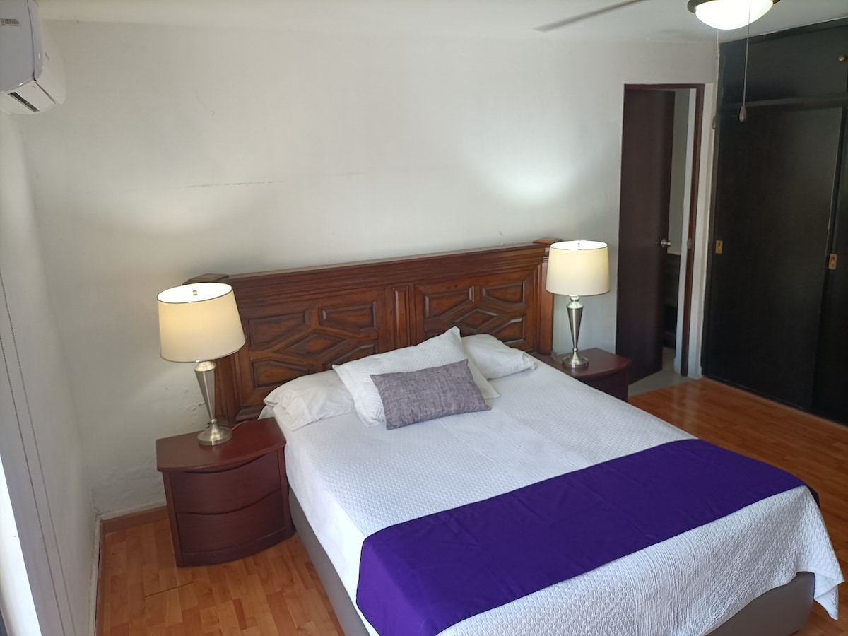 Casa completa con ubicación estratégica, a 5 minutos caminando del IMSS y 2 min de Laguna del Náinari. Totalmente renovada, en planta baja y sin escalones, ideal para recuperación, descanso o vacaciones. Dos amplias recámaras con clóset y abanicos, un baño, sala comedor y cocina equipada en gran espacio abierto, perfecta para familia completa. Equipada con aires acondicionados en cada área, COCHERA para AUTO CHICO con reja (2.38 ancho x 6.85 largo) Inmejorable opción, ¡te sentirás como en casa!