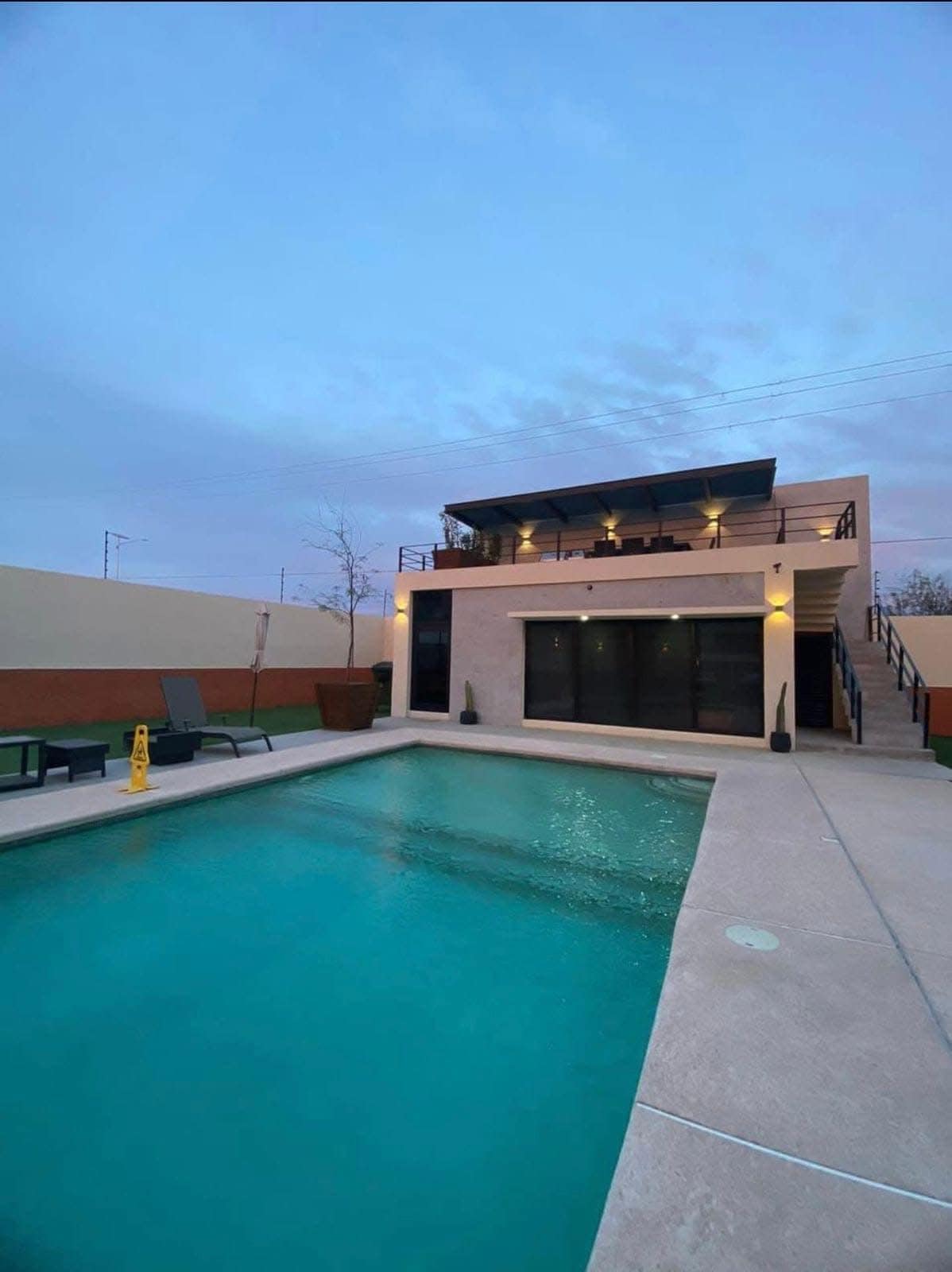 Diviértete con toda la familia en este alojamiento completo y con estilo. Agradable ambiente, muy seguro, terraza con vista al Estadio Yaquis Entrada controlada, vigilancia 24/7 Camaras de seguridad, 2 pantallas de TV de 65” con Netflix Prime Equipo de sonido en terraza y jardín Refrigerada y con calefacción Muebles elegantes y modernos, bar con barra de granito Escalera de Madera con cristal templado, cocina equipada, cafetera Nespresso Cuarto de lavado Patio Fogata y garaje cubierto.