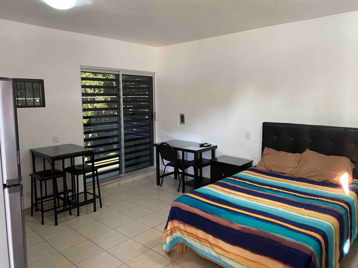 Nuevo y cómodo departamento tipo studio en planta alta ideal para 2 personas. Se encuentra ubicado en una buena zona de la ciudad, muy cerca del hospital ISSSTE, IMSS, laguna del Náinari, farmacias, transporte público y tiendas de autoservicio. Agradable lugar para una estancia tranquila y segura. Se accede con una cerradura wifi, por lo que se le entrega su código de acceso y código para recoger sus llaves. Contamos con alumbrado y cámaras de seguridad para el estacionamiento en la calle.