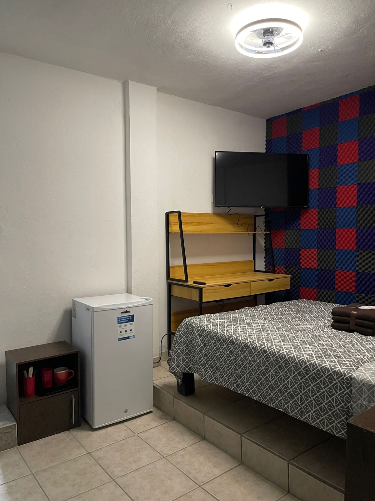 Espacio PEQUEÑO BIEN aprovechado, con excelente ubicación céntrica, apartada del bullicio de zona comercial, ubicado a 3 cuadras del Hospital San José, a 4 min de la Plaza Tutuli/Liverpool, a 5 min de la Central de Autobuses. Cuenta con 1 recámara MATRIMONIAL, 1 baño, comedor, cocineta, compacto y equipado, cuenta con todos los servicios, Wi-Fi, Smart TV (sin cable), cámaras de vigilancia externa, cerradura eléctrica, llegada por cuenta propia y estacionamiento propio al frente al exterior.
