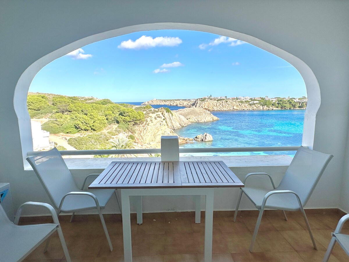 Desde la terraza, se pueden ver las típicas casetas blancas menorquinas de Playas de Fornells enmarcadas por el mar y en el fondo el cabo de Cavallería y su impresionante faro. Un lugar idílico donde se pueden admirar espectaculares vistas panorámicas del mar ; un verdadero poema para los ojos que se vuelve especialmente único durante la puesta de sol. El apartamento está ubicado a tan solo 5-10 minutos caminando de la playa Cala Tirant.