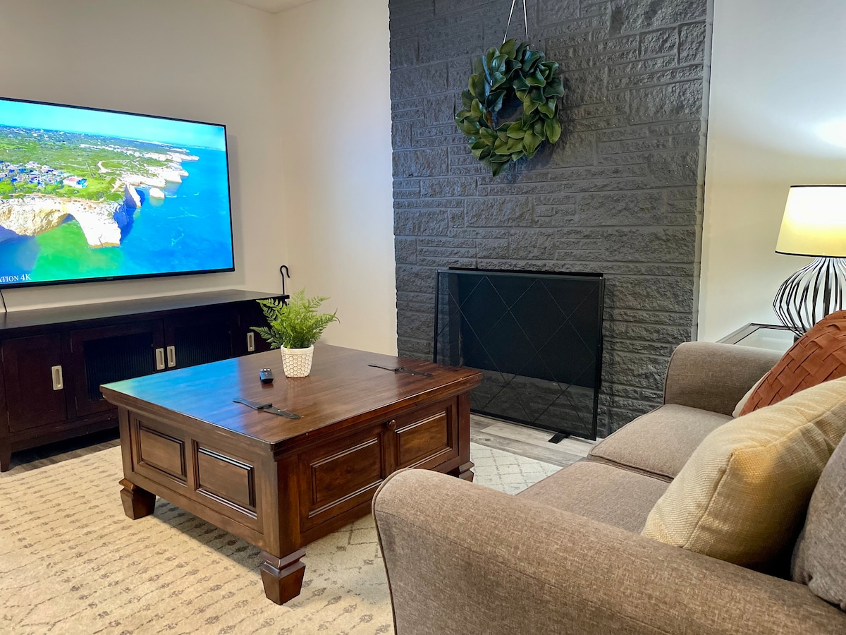 商场附近的1间带壁炉的漂亮卧室!