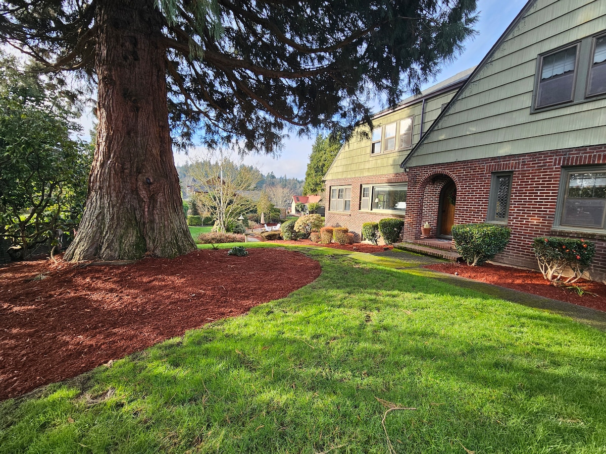 Charming cottage apartment on a garden and forest hill. Next to the Willamette River, 30 mins from downtown Portland. Relax, and enjoy the quiet and peaceful surroundings. Fully stocked kitchen. Fast wifi at 50 Mbps. Cozy inside in the wintertime, also with a park-like setting with walking access down the lush backyard to the river where you can enjoy swimming, fishing, kayaking, and bird watching. You can use the shared recreation room with ping pong, pool table, shuffleboard, and weights.