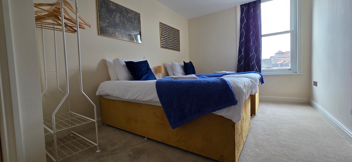 We would like offer our beautiful 2 bedroom apartment situated 2 mins walk from the beach, 5 mins from the town centre. Situated virtually opposite Clacton Pier and its attractions, restaurants and bars. Situated on the 2nd floor of the building. The property has recently been fully refurbished. Sleeps 6 guests, and boasts a lounge, 2 double bedrooms, with one being a twin room All bedrooms & lounge have 42inch plasma 4K Ultra Smart TVs on the walls Free parking space, and private entrance