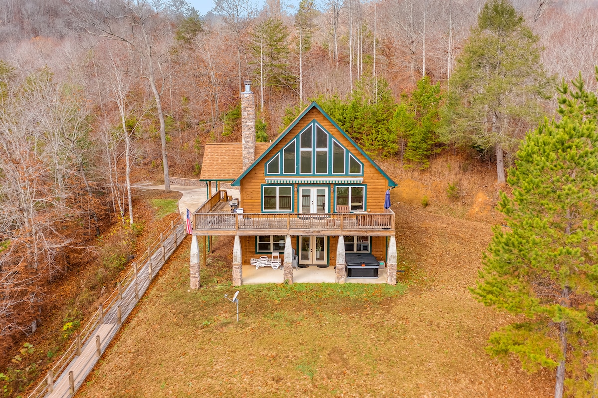 Our modern lakefront cabin sleeps 21 with 2 full width decks, and a hot tub and fire table on lower decks, dock w/ covered slip + picnic table. 100% renovated in 2020 by new owners, come enjoy our place at Norris Lake under knotty pine cathedral ceilings with unlimited WiFi, 6 free kayaks, outdoor fire pit, and wooded views of the Lake and mountains. Fam Rm with sofas, high-end furnishings + cozy décor welcome you to this 6- bedroom getaway in the no-wake cove of Flat Hollow Marina.