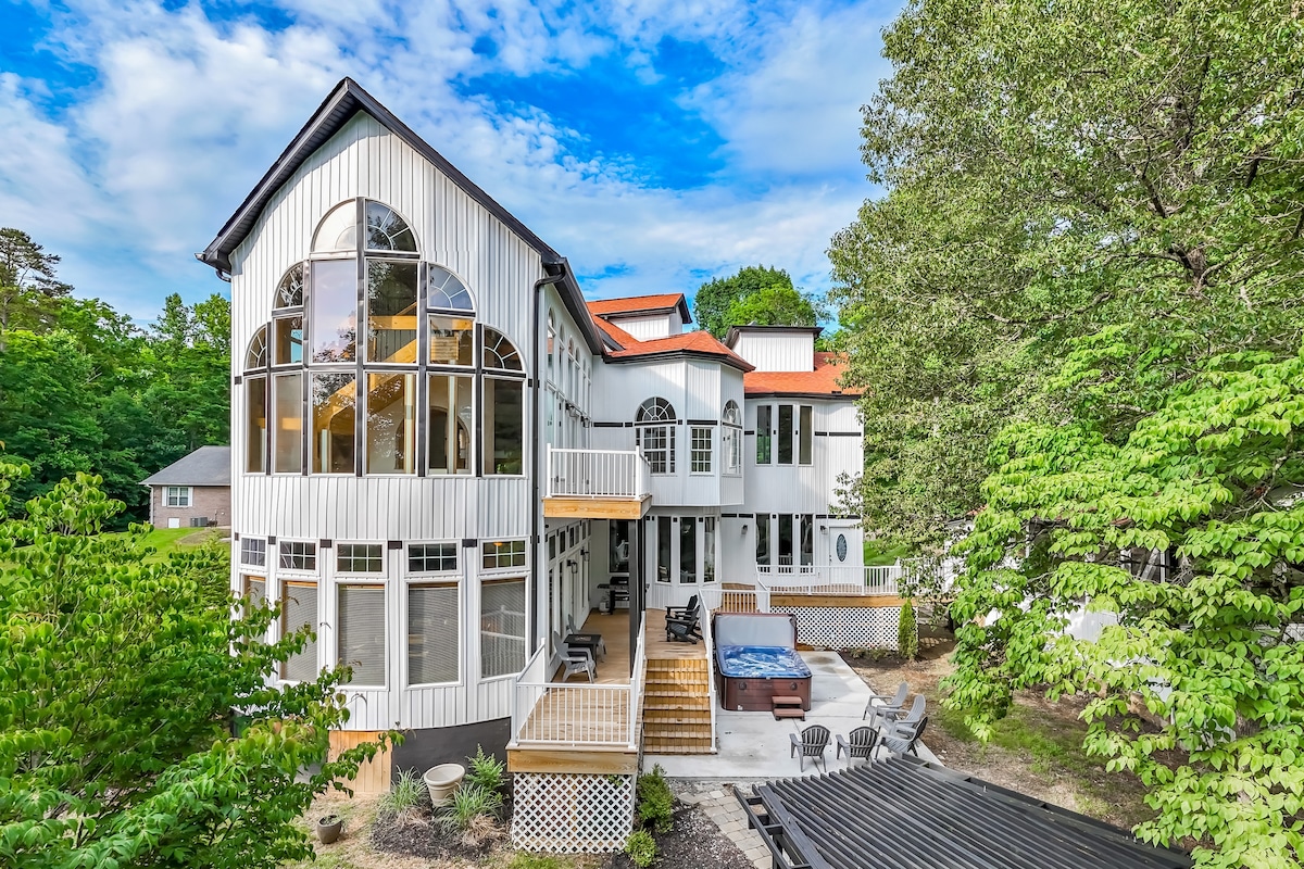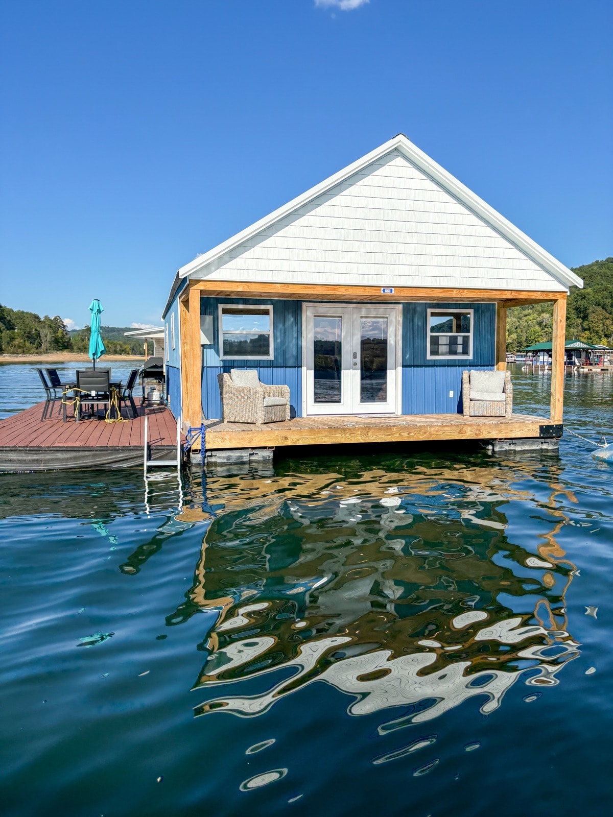 Lovin’ the Lake Life – Leave the crowds behind at this unique vacation stay, a 3 bd home surrounded by & FLOATING on water, yet firmly grounded & packed with every amenity to make your trip complete! Wake up to wide open views of the water from every window and start your day relaxing on the front deck enjoying your early morning coffee. Spend the afternoons exploring the coves and cozy inlets on our pontoon boat or bring your own & park it under our private covered boat slip.