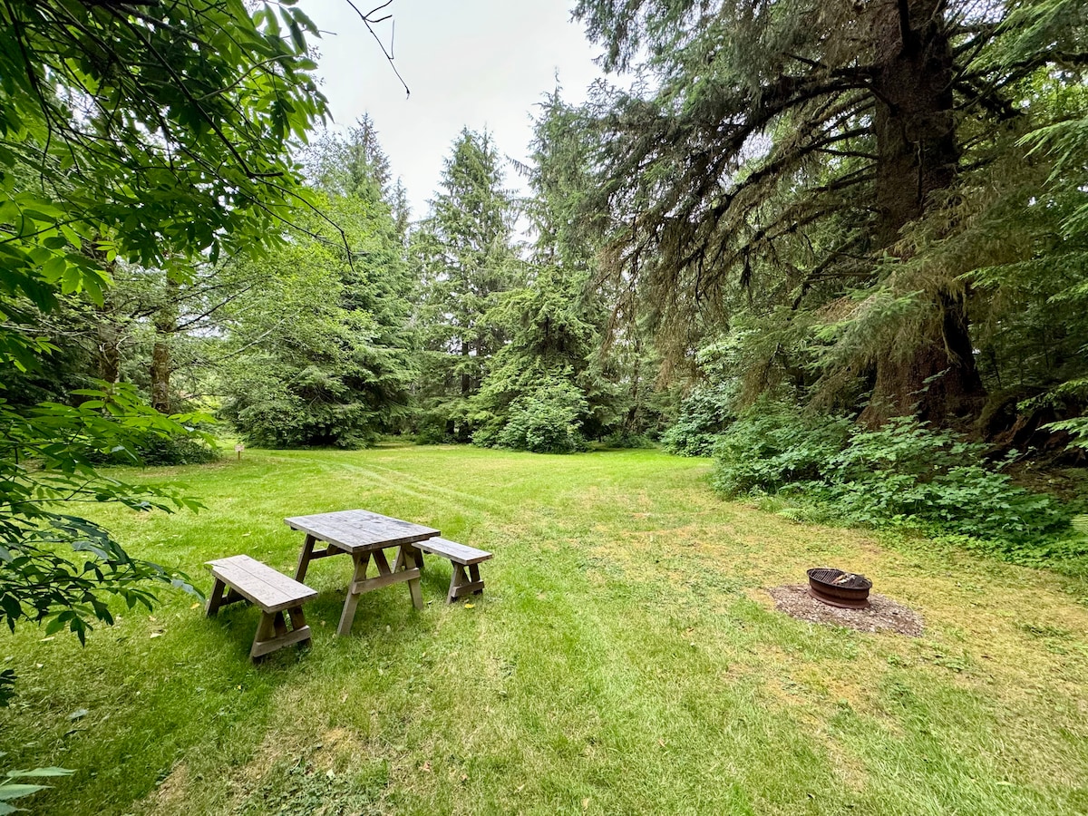 Escape to our enchanting Forks campsites, nestled in the breathtaking beauty of the Olympic Peninsula. Enjoy the symphony of chirping birds and squirrel shenanigans while savoring s’mores by the campfire. Amenities include fire pits, a port-a-potty, and 12 acres of property for you to explore. Our spacious sites offer privacy and tranquility for a truly relaxing stay in nature.