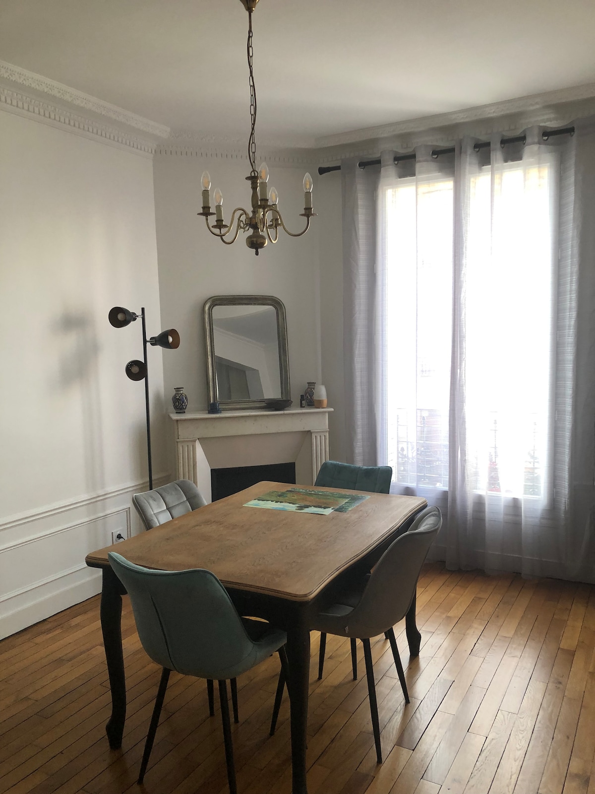 Appartement de 50m2 environ, rénové, avec charme de l’ancien (parquet, cheminées, moulures), pour 2 à 4 personnes. Situé dans le quartier de la Gare de Clamart (à 5 mn de la Gare), calme et avec toutes les commodités : commerces (boulangeries, supermarchés, pharmacie,…), transports, restaurants, marché. Proche de Paris, à 8mn de la Gare Montparnasse depuis la Gare de Clamart avec le transilien ligne N.
