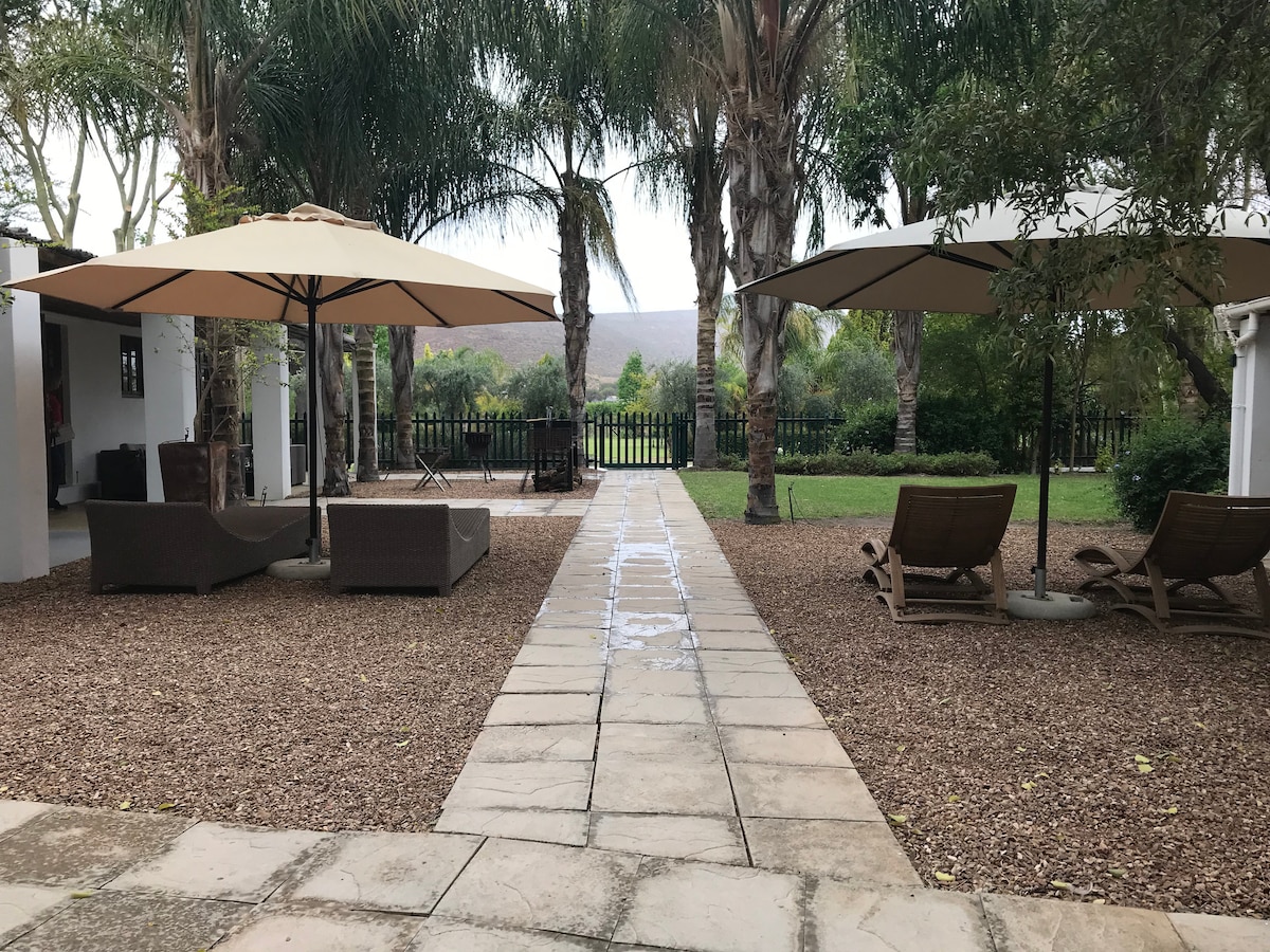 I have decided to rent out my personal farm house\ guest house to happy road trippers seeking solitude and a peaceful surrounding. The house is within a valley surrounded by 48 hectares of open land,beautiful mountain (cederberg) backdrops and a river with three natural swimming areas within walking distance of the guest house and the place include a 25m lap pool right in front of the veranda! Oh and plenty of clean breathable air :). There is one full sized bed so its best suited for couples.
