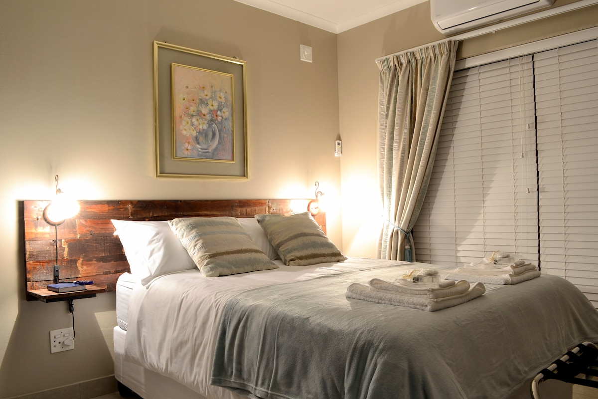 Take it easy at this unique and tranquil getaway. Where you can escape the rush of the city. The room is fully equipt for self catering. There are solar lights, no plugs but charge facilities are available. You can relax at the pool after a 3.8km walk in the mountains. Or just sit back and watch the beautiful sun set on the horison.