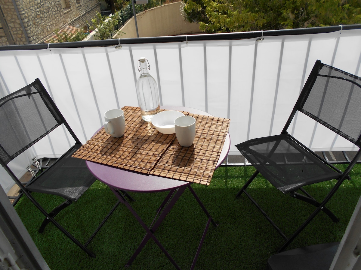 Joli petit studio de 18 m2 - CLIMATISE - fraîcheur l'été, chaleur l'hiver- avec sa TERRASSE PRIVATIVE situé sur le côté de notre villa d'habitation. Son ENTREE est INDEPENDANTE. Sa terrasse donne sur le JARDIN verdoyant de 400m2. Quartier résidentiel et calme, PARKING GRATUIT dans la rue devant la maison. LES 2 LITS SIMPLES peuvent être RAPPROCHES ou SEPARES par un RIDEAU, pour créer DEUX minis ESPACES chambrette DANS LA PIÈCE PRINCIPALE et préserver l'intimité de chacun.