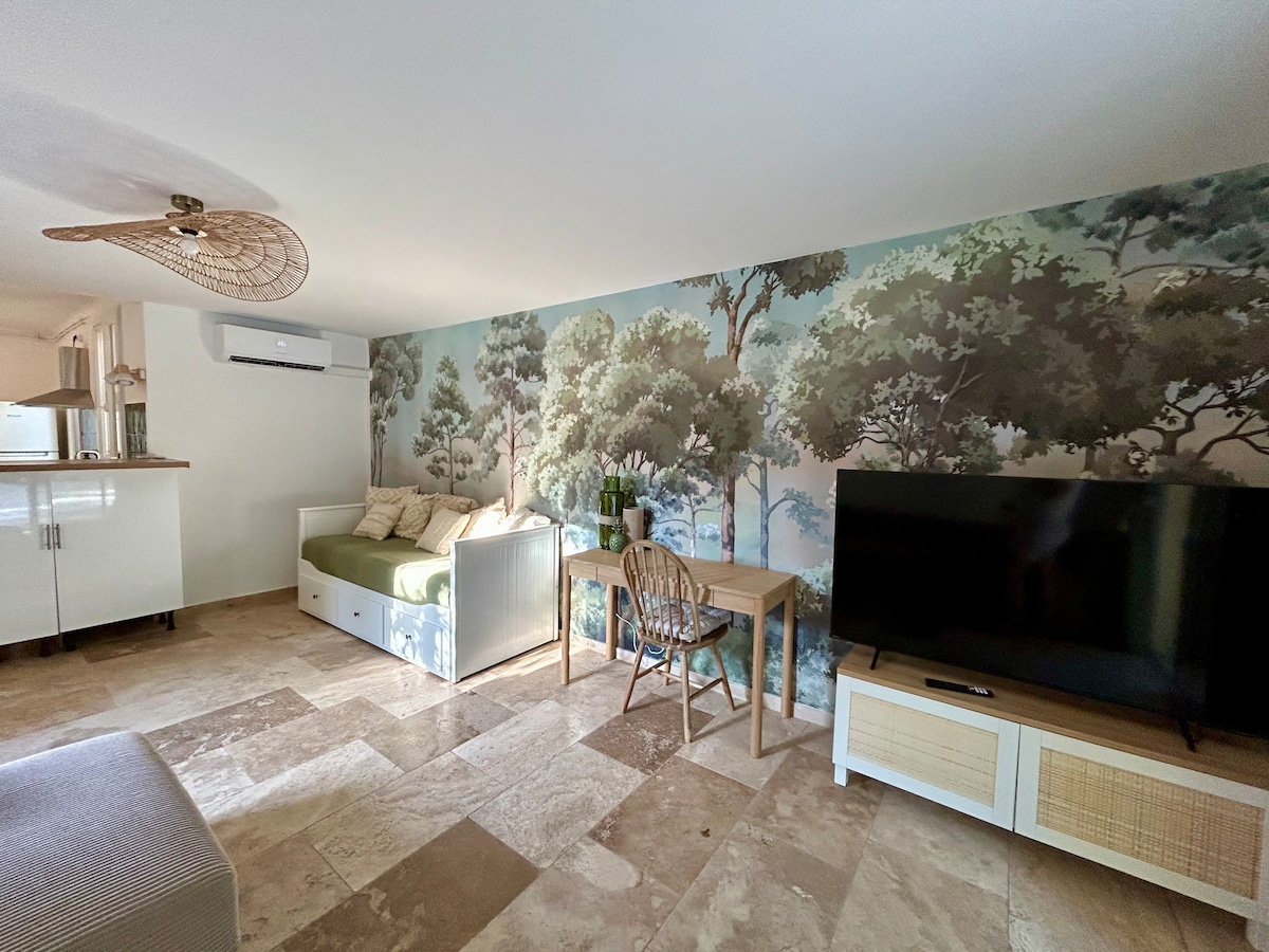 Bonjour, nous proposons un F2 meublé indépendant, avec terrasse et parking, au sein de notre maison avec piscine. Entrée privative, cuisine et salle d'eau individuelles, équipement complet et literie de qualité. Tramway à 3 min à pied, à 15 min de la gare St Roch et de la place de la Comédie, son point fort est son emplacement très privilégié, avec accès direct aux commerces, marché, et centre ville, tout en profitant d'arbres centenaires, d'une faune préservée, et du parc apaisant de 3300m2.