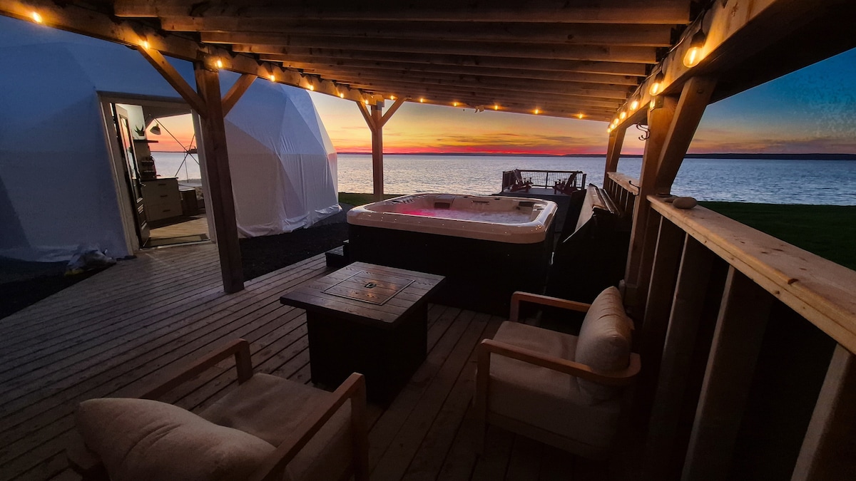 You won’t forget the peaceful surroundings of this rustic destination. This stunning luxury sea can cabin like you've never seen before on the coastal lines of the acadien shores. Enjoy the view from your bed, living area or even the outdoors surrounded by our propane fire its. Explore on the beach just meters away.This memorable place is anything but ordinary. Relax in our private Hot tub while taking in the sunsets sights! Pets are not permitted in this cabin.. Cabin #1