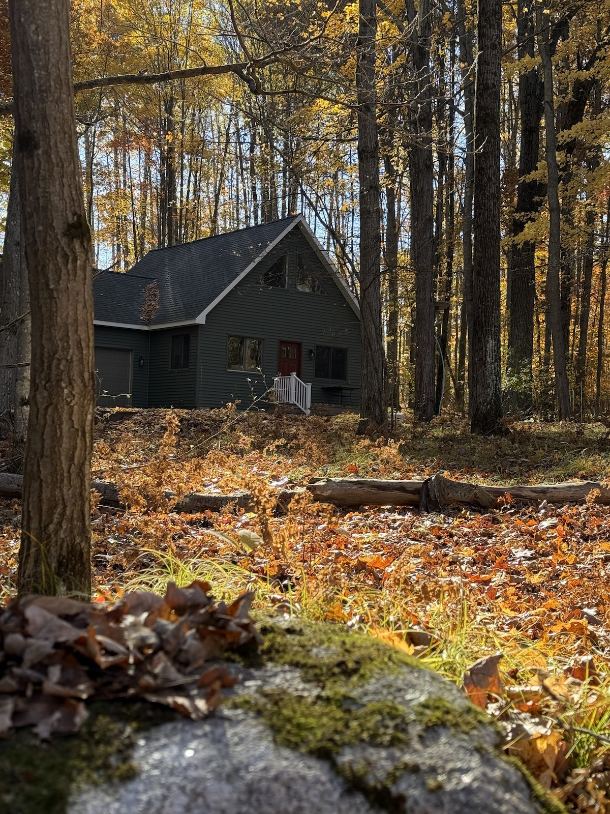 Escape to this unique retreat nestled amongst the white-washed birches and majestic pines. Located 10 minutes from downtown Clare in the picturesque Five Lakes community, this haven is the perfect getaway for all four seasons. This adorable A-frame comfortably accommodates six persons. Furry guests are welcome as well. The stylish "cabin core" design is stimulating to the eye. Come relax both inside and outside this quaint gem.