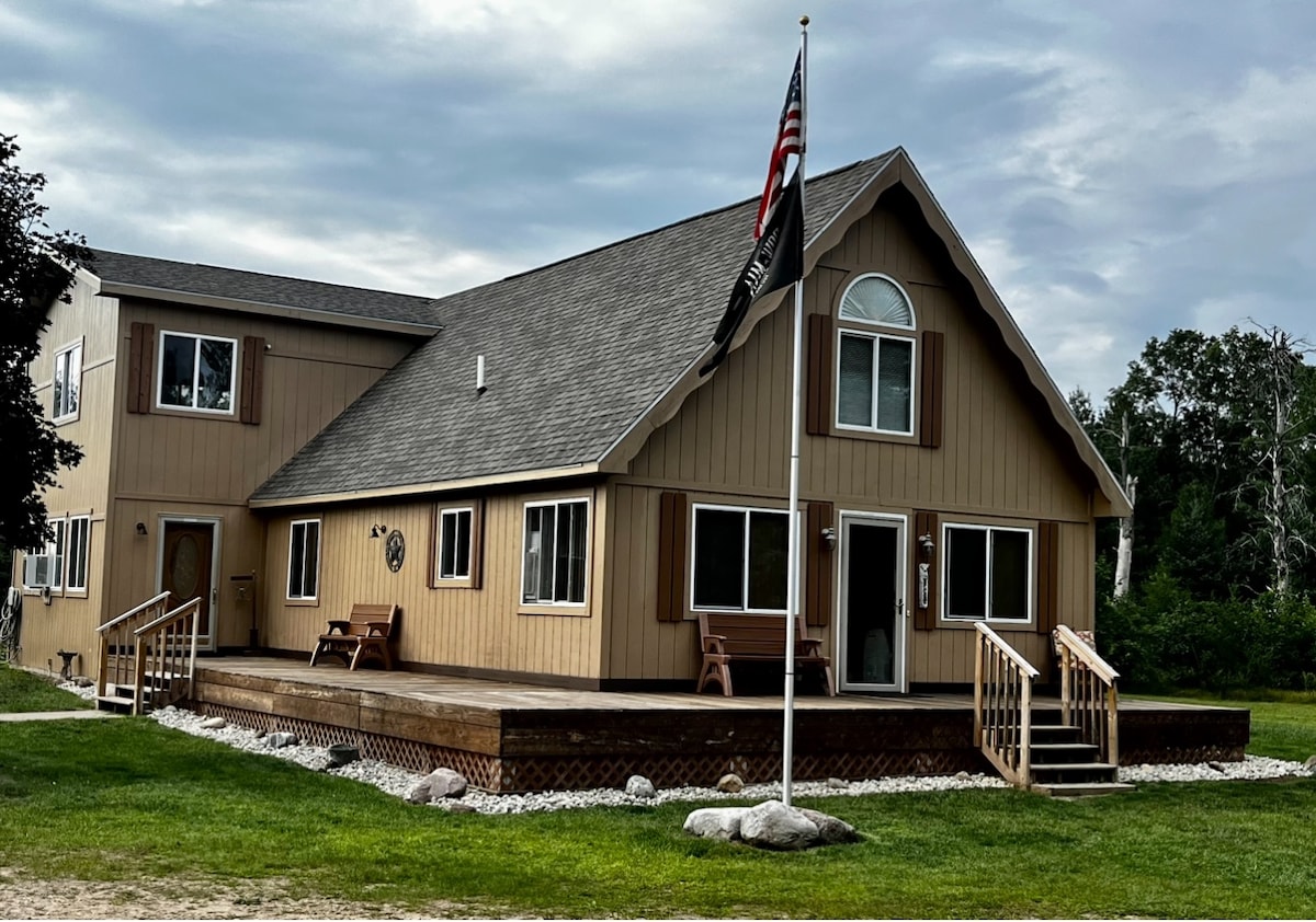 Immerse in nature's beauty at this tranquil hideaway on the picturesque Clam River. As spring arrives & the landscape awakens lush green, witness diverse birds, and wildlife. Fish in the river, explore trails, kayak, or ATV rentals nearby. This 4BR/2.5BA home sleeps 10, with a well-equipped kitchen and dining area. You'll find entertainment with a pool table, board games, and more. Step onto the river-view decks with a grill and a fire pit for cozy campfires. Year-round access on paved roads.