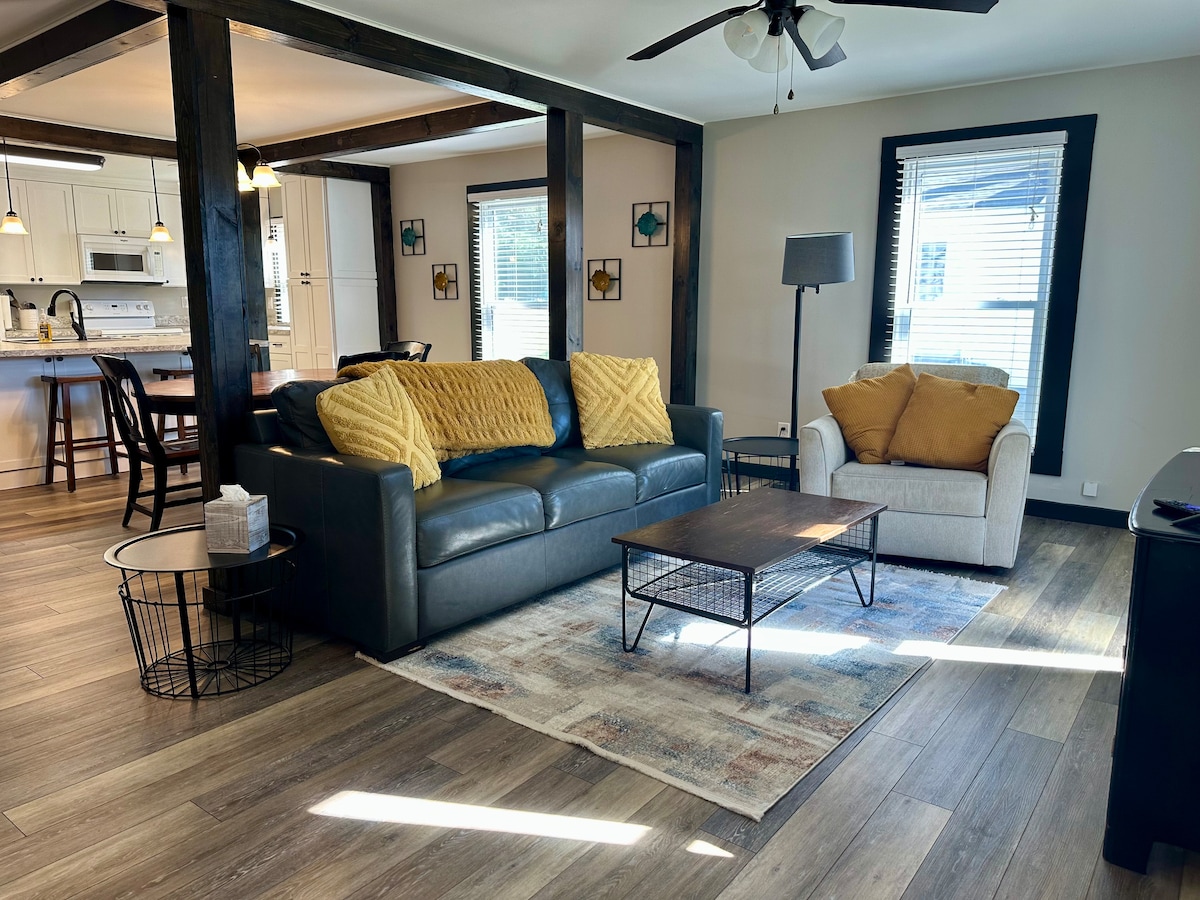 Fun with the whole family in this newly renovated and stylish 3 bedroom and 1 bathroom brick ranch. The kitchen is fully stocked, microwave, dishwasher, coffee maker, and other small appliances. Rooms have smart TV's for you to use your own services, and already uploaded for free TV watching. Outside you will enjoy the propane grill and patio seating on a private lot. 2 animals welcome with a pet fee. We are compliant with health and safety guidelines for COVID-19.