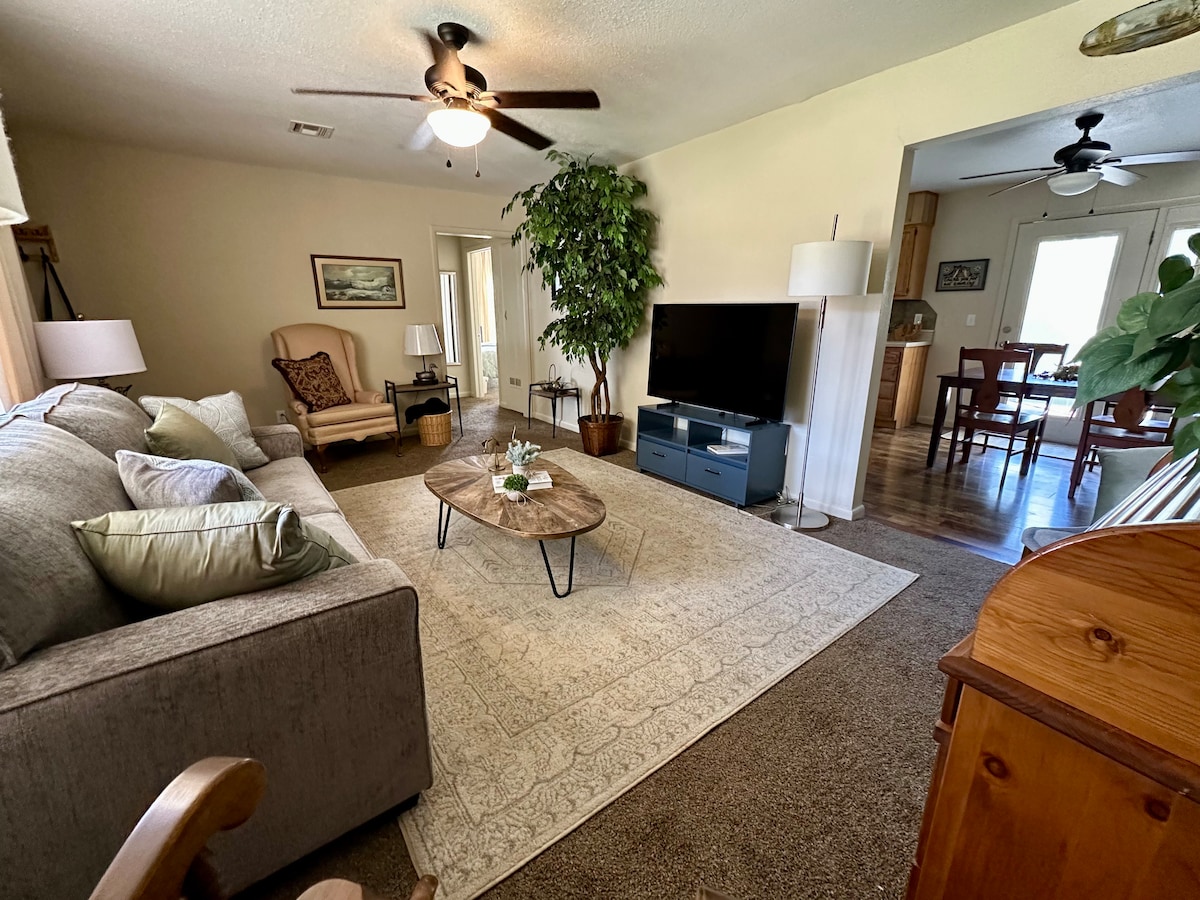 Our guesthouse has a very warm, peaceful decor to parallel the nature around it. You will likely see many deer and other wildlife from the huge covered back porch while enjoying a meal cooked in your full kitchen. You will also have access to an attached single-car garage where there is also a washer and dryer available for your use. The pool is left open year round. Whether you need a place to get away and relax or place to call home while you're traveling for work, this is your place!