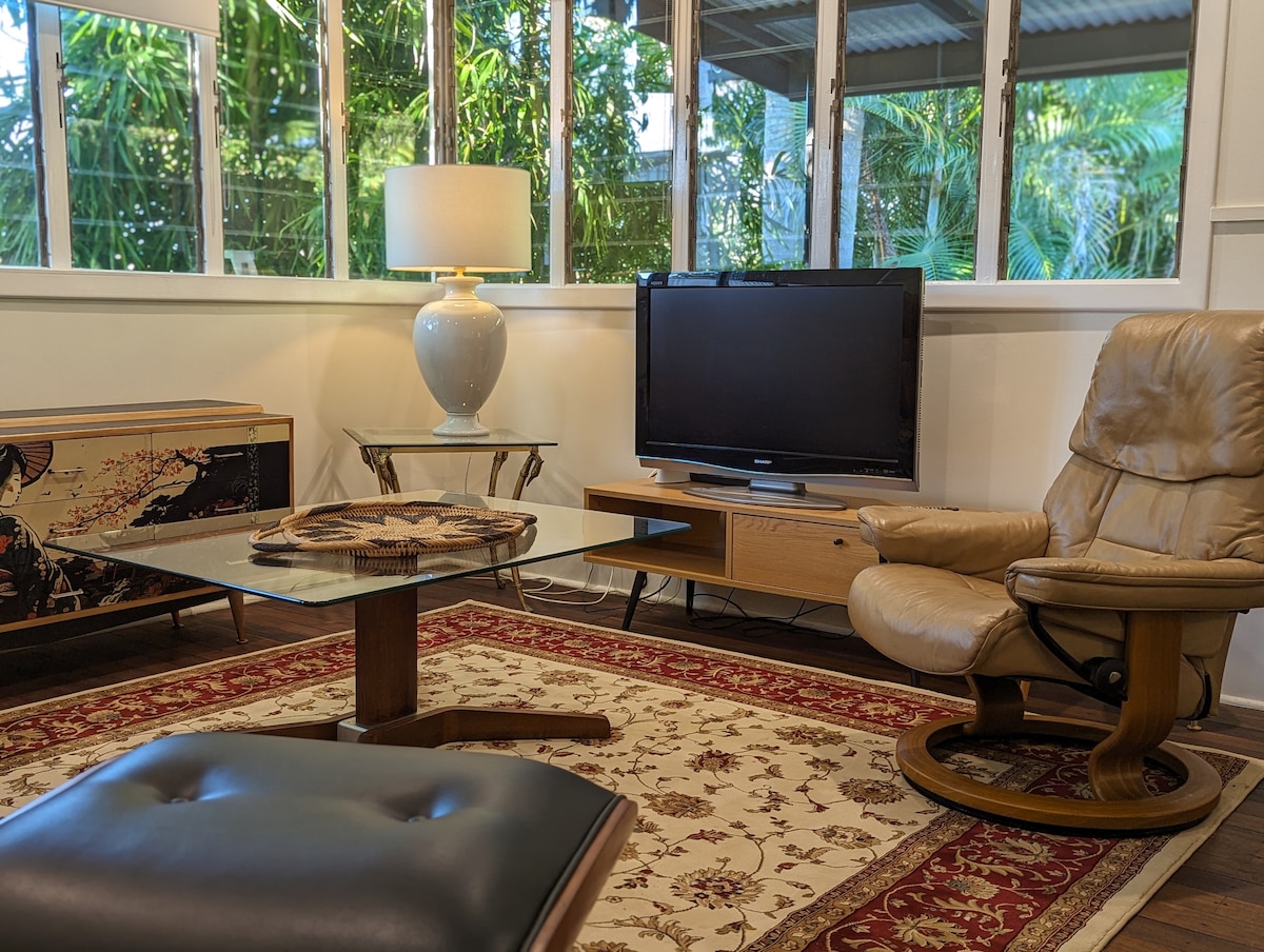 The first thing you hear is the birds as the morning light streams through your windows or the block-out curtains allow you to rest as the day drifts by. Overlooking the pool and private yard surrounded by trees, it's hard to believe that Coles, Aldi, Woolworths, the train station, pubs & clubs are less than 2 km's away Our mild winters, exceptional beaches, National parks, & unique community are within reach daily! Visit for a day and stay a lifetime. Full Kitchen facilities, WiFi, AC, fridge.