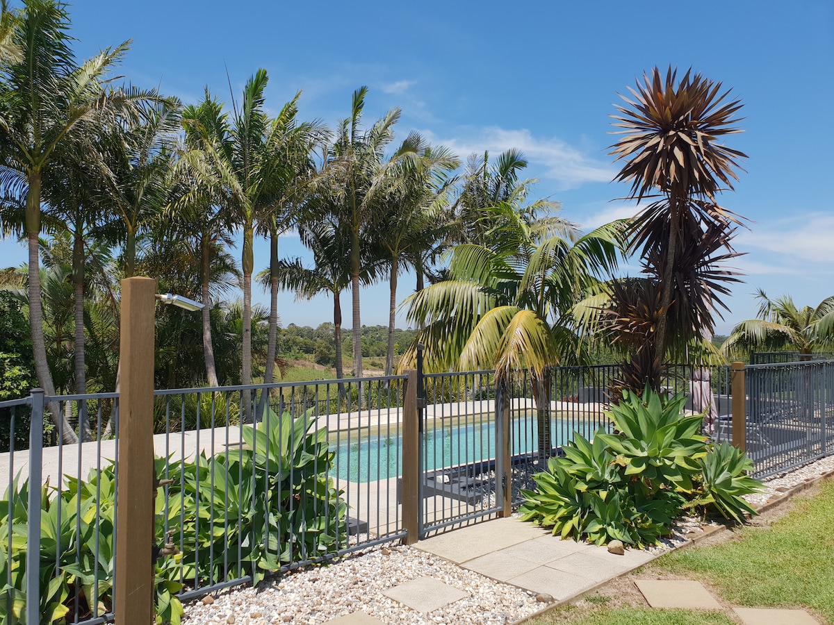 A relaxing getaway located in a rural setting on 6 acres 5 minutes drive from Alstonville village, 20 minutes from Ballina, 30 minutes to Lennox Head and 40 minutes to Byron Bay. The 2 bedroom suite has it's own sitting/TV room, kitchen/dining area with cooking and tea/coffee making facilities and it's own private deck with BBQ facilities. There is a private three-way bathroom which includes a large bathtub for that relaxing bath. Easy off street parking.