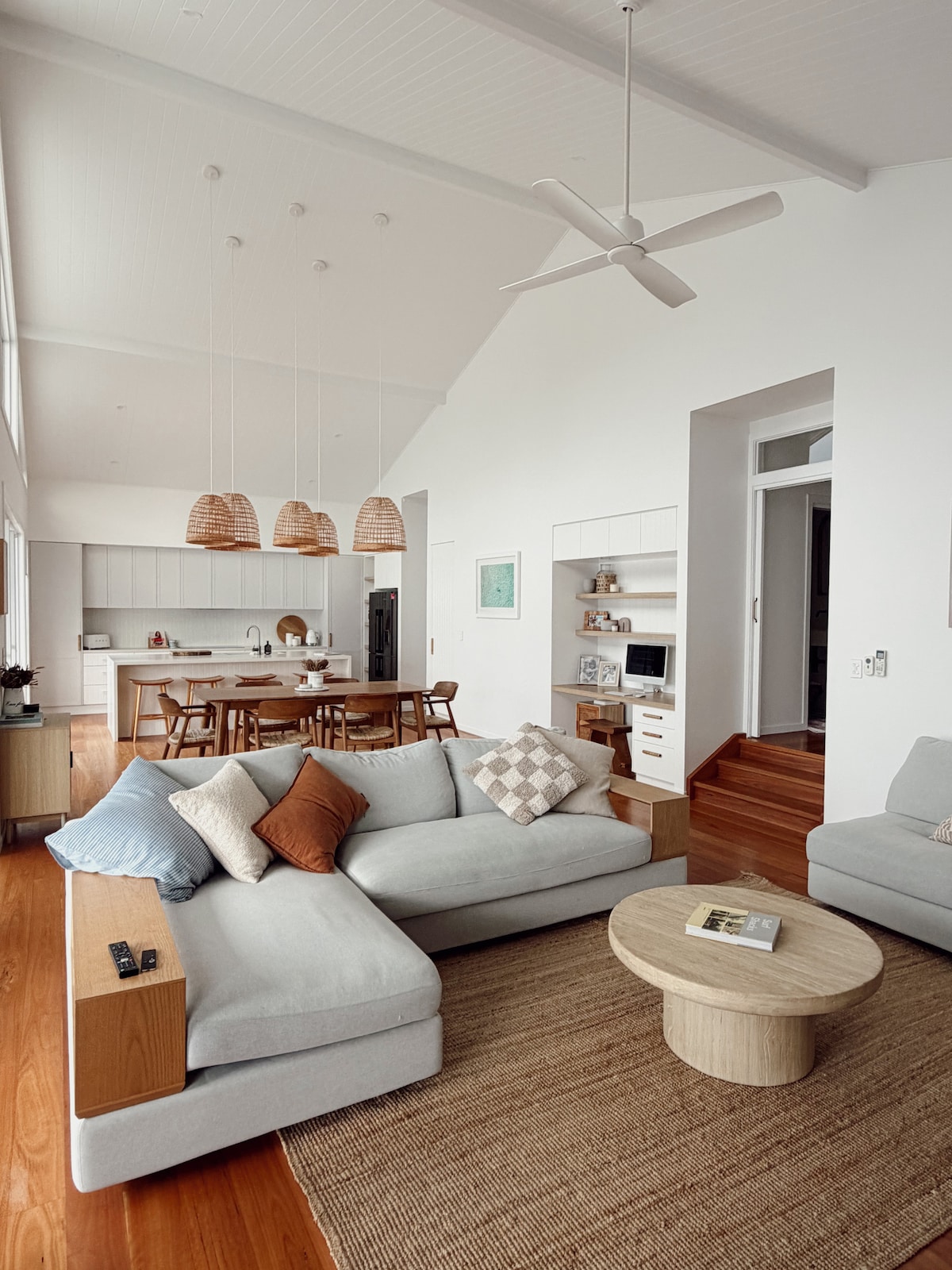 Located in the heart of Coffs, our uniquely designed Coastal Hamptons Cottage is an easy stroll to the city centre, restaurants, bunker cartoon gallery, botanical gardens and a short drive to the pristine beaches and Jetty. Ideally suited for couples, families and business stays. Engulfed in natural light, the living area, with high raked ceilings is the perfect place to start your day. While the north facing deck and private garden is the ultimate spot to spend happy hour