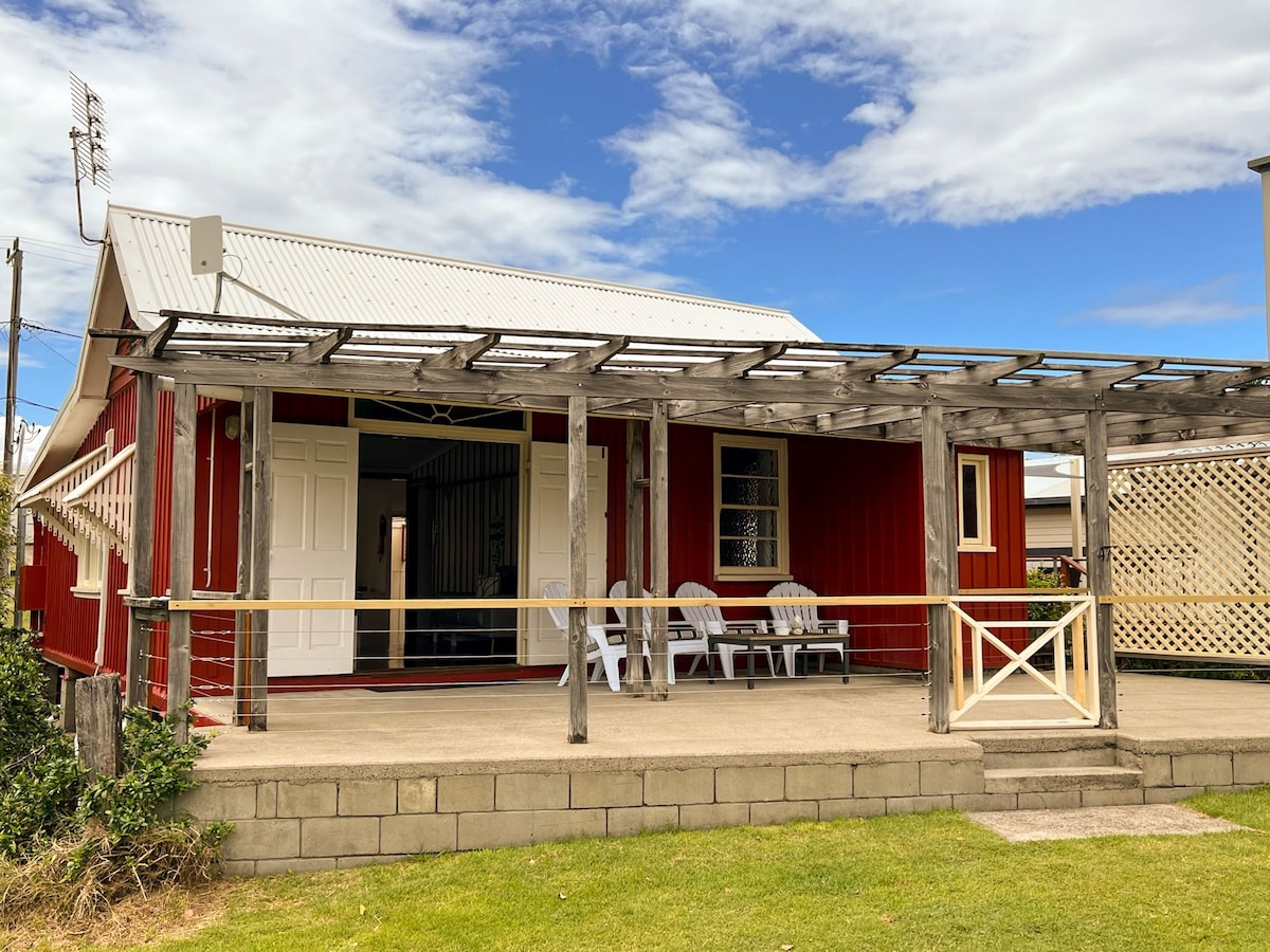 This two story house was constructed by a local surfer/builder in the 80s and is being lovingly transformed into an ideal Northern NSW escape! So expect a mix of modern (wifi, brand new bathroom, new beds, furniture, new appliances) with some quaint ol' country charm (fire place, exposed beams, front porch, swaying trees etc). Situated on the edge of the Yuraygir National Park and 60 second walk from stunning Lake Wooloweyah (the sunset stroll is a must!) Three mins drive to Angourie Pt.
