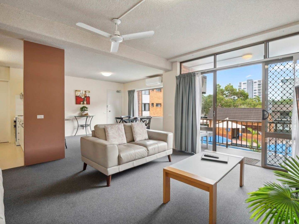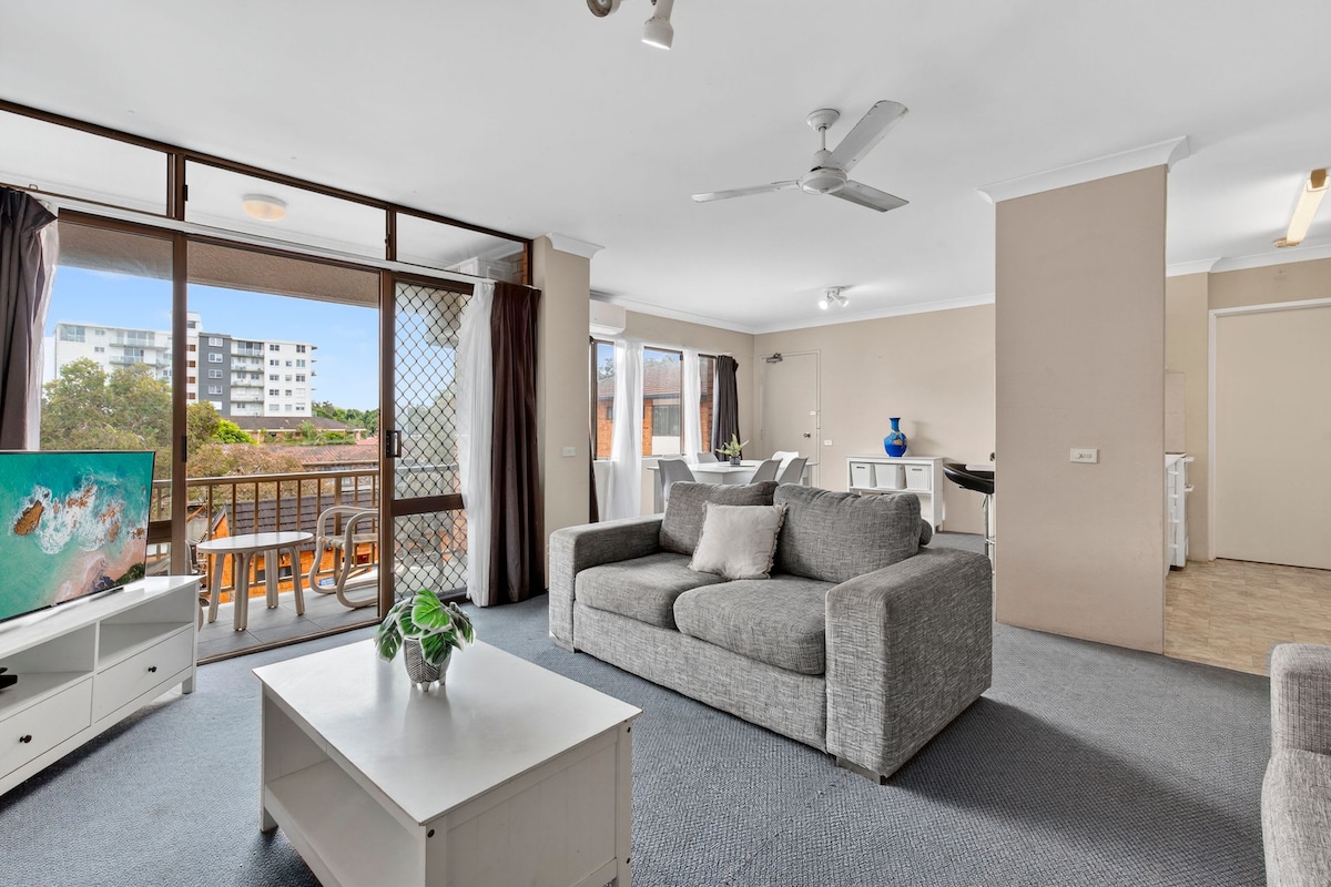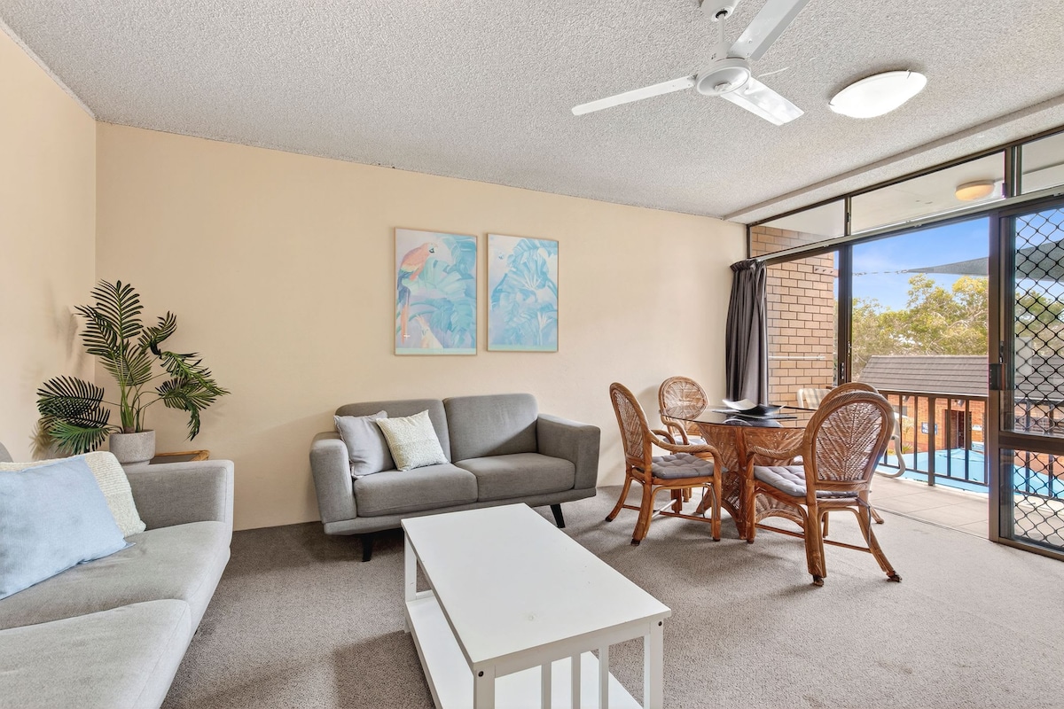 Apartment 208 at Sandcastles is a budget friendly apartment in which you can enjoy a relaxed beachside escape. This second-floor two-bedroom apartment with a private balcony is part of a secure resort-style complex with a heated pool, two spas, sauna, and BBQ lounge. The main bedroom has a queen bed, the second has two singles. Linen, towels, free Wi-Fi, and secure parking included. Cafés, the surf club, and the Hoey Moey pub are all within walking distance. Your perfect coastal retreat awaits!