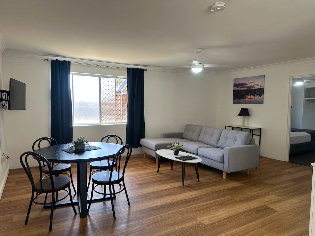 Kick back and relax in this calm, fully renovated professionally styled space forming part of the Iluka Villa complex. Located right on the Clarence River, you can also enjoy the large swimming pool, BBQ, waterfront summer house, private jetty and your own boat ramp. The Yamba ferry & river cruises leave from the marina only two doors up. There's ample parking & space for your boat as well. Our unit is peacefully located at the front of the Villas and offers your own private outdoor area!