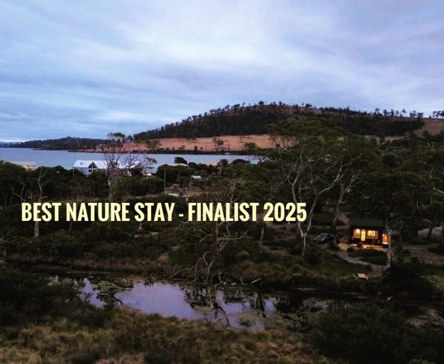 Experience the magic of a tiny cabin set amongst a grove of gum trees beside a creek around the bend from an isolated beach in a little-known corner of Tasmania. Everything is tiny, but guests tell us it has everything you need... including luxurious touches like European linen. Expect birdsongs, the tidal rising and falling of the creek, sea breezes, moonrises, smoky clothes, salty skin, starlight. Proud finalists in the 2025 Airbnb Host Awards - Best Nature Stay