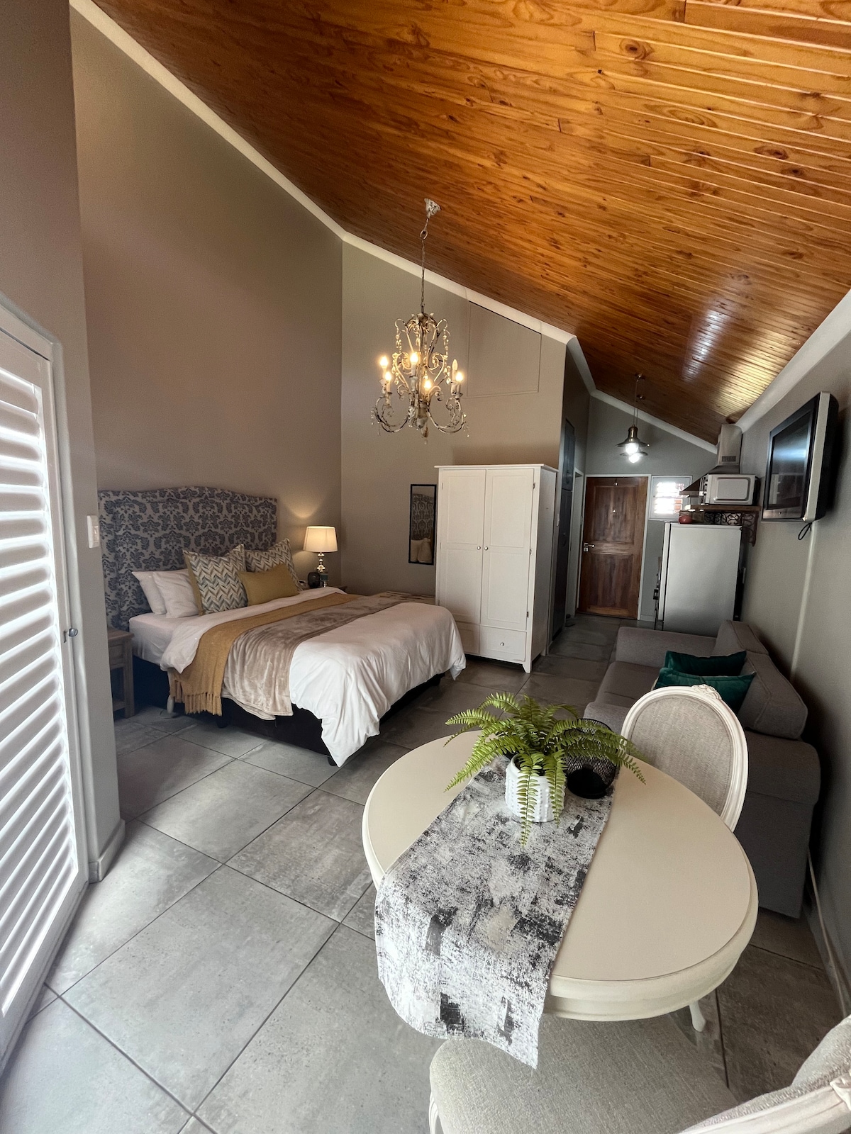 Our Cottage is one of three units situated on a prime location, walking distance from the square, and right next to the hiking trails. Our cottage offers 1 bedroom with a double bed, fully equipped kitchenette, lounge area with sleeper couch and outdoor seating area. You are welcome to bring your pets along by prior arrangement as the back area of the cottage has its own fenced off little garden where your pets can play freely. Pet fee = R200 for cleaning
