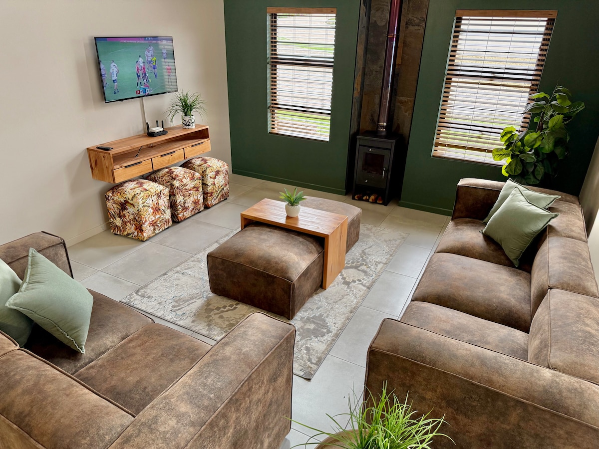 Swartland House is a spacious fully equipped beautifully decorated house with a lovely open - plan lounge, dining and kitchen area. It has 3 bedrooms with 3 ensuite bathrooms. Two bedrooms have a king bed and the third bedroom has a queen bed. The veranda is a special place to enjoy your holiday from as it looks out over Mt Horeb mountain . The lounge is equipped with a beautiful fireplace. It has full premium DSTV. The main bedroom has it's own fireplace. There is space for 2 single mattres.