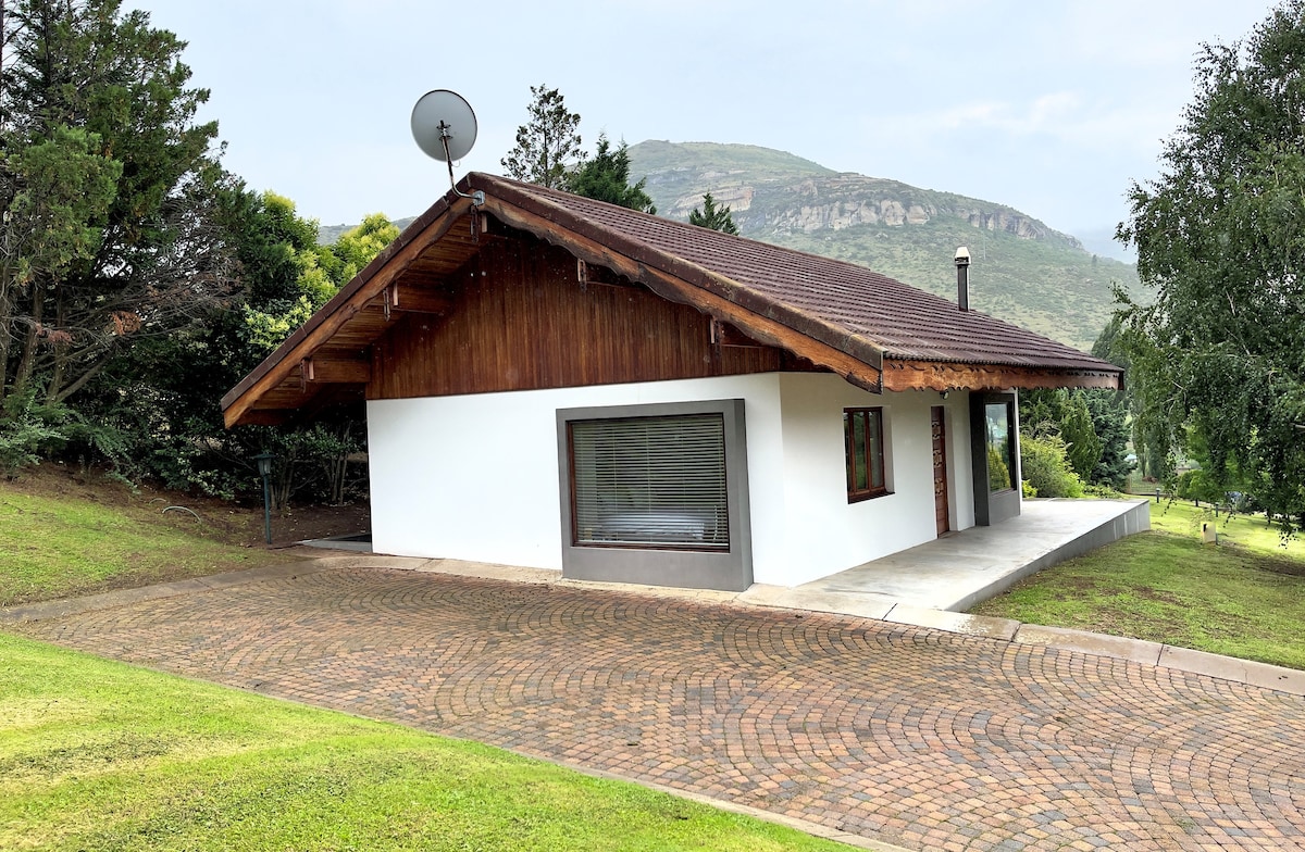 This holiday home comprises 2 bedrooms each with en-suite bathrooms, each fitted with a shower only. One bedroom has a double bed, the other, two singles. The home features a fully equipped kitchen, and a living and dining area. The house features a balcony overlooking the Maluti Mountains, equipped with a gas braai. There is one garage, and the living areas are accessed via a flight of stairs.