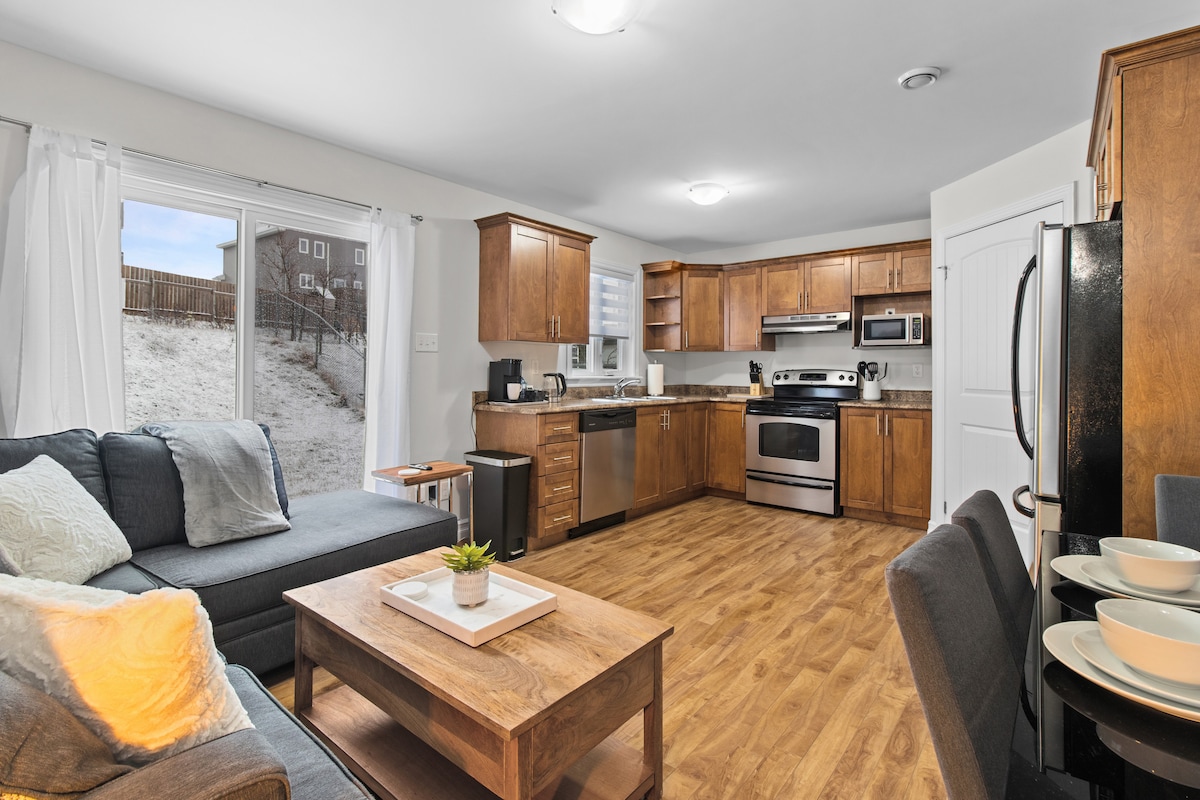 Welcome to The Cozy Caribe 🌴 — a fully private, bright basement studio with its own entrance. The entire suite is yours, including bedroom, bathroom, and full kitchen, all with tropical accents and a relaxed island vibe. 📍 Great location: 3-min walk to grocery, Tim Hortons, and bus stop; quick access to TCH, Galway, and Pitts Memorial Drive; 15-min drive to HSC, MUN, and the airport. No cleaning fees. Perfect for short or long stays—privacy, comfort, and island vibes all in one.