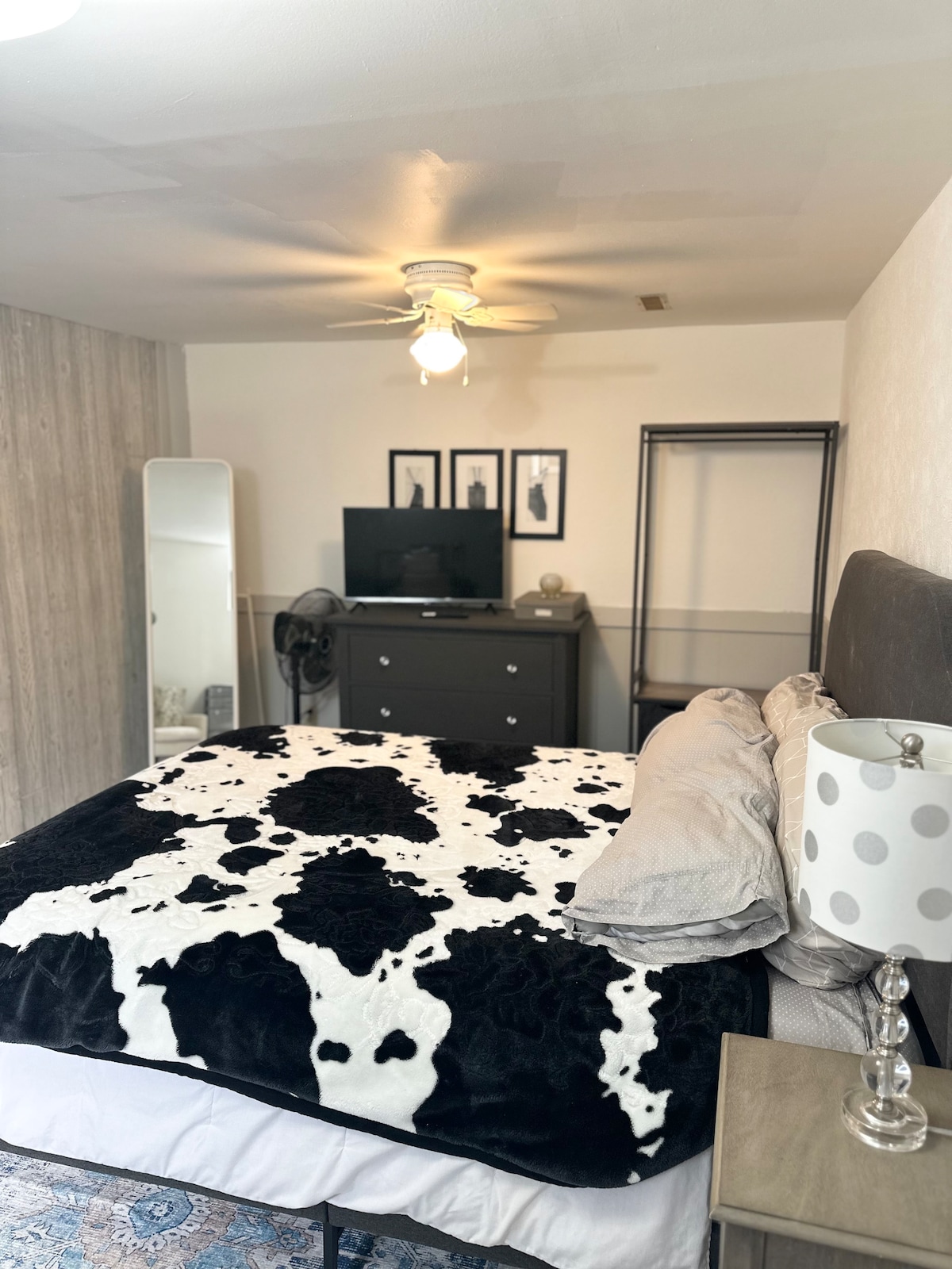 Welcome to your home away from home! This walkout basement has a private entrance and is newly constructed with a full bathroom and kitchen amenities, a spacious living room, indoor and outdoor dining areas, and a comfortable bedroom. Enjoy modern conveniences such as Wi-Fi and a 50" television with a fully paid Netflix subscription. Your convenience is our priority, with a designated parking space in the driveway for guests. Located nearby are popular dining options like Swiss Chalet, DQ, etc.