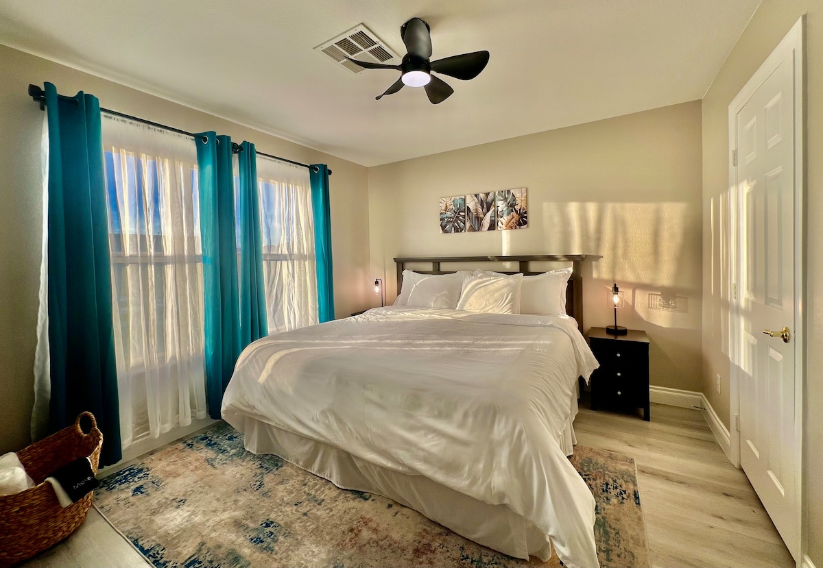 Experience tranquility in our bright and cozy upstairs unit with private access, nestled in the heart of Silverado Ranch! Relax on the large patio with a BBQ, overlooking a serene backyard, perfect for morning coffee or evening drinks. The flexible second bedroom doubles as an office, ideal for remote work. Located just 13 minutes from the airport and close to shopping and dining, our home offers convenience and comfort. Enjoy the spacious living room and dining area for a truly relaxing stay.