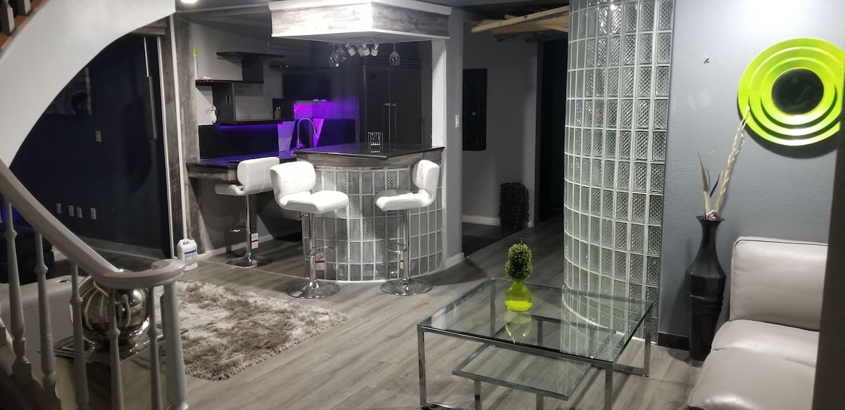 compound style living, in an industrial area ,very secluded, but very close to everything, strip, shopping and clubs..ect. in can be quite it but we have no noise limitations there is a recording studio on property, it's a commercial build so its pretty sound proof, sky lights in the master suite, 3 different entrances, private entrance to master suite, so you own guest want even know you here.
