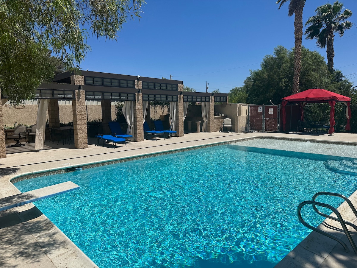 Your beautiful 1-bedroom private suite awaits, featuring a studio kitchen, private full bathroom, dining table, games, workspace, cozy living room with coffee bar. Relax in your private oasis with a beautiful backyard, big pool (3-10ft deep) and heated spa. Perfect to unwind after a thrilling day in Vegas. Suitable for a romantic getaway, family trip, or solo vacation! Book now and experience your ultimate vacation! Enjoy total privacy with a separate entry and no host interaction.