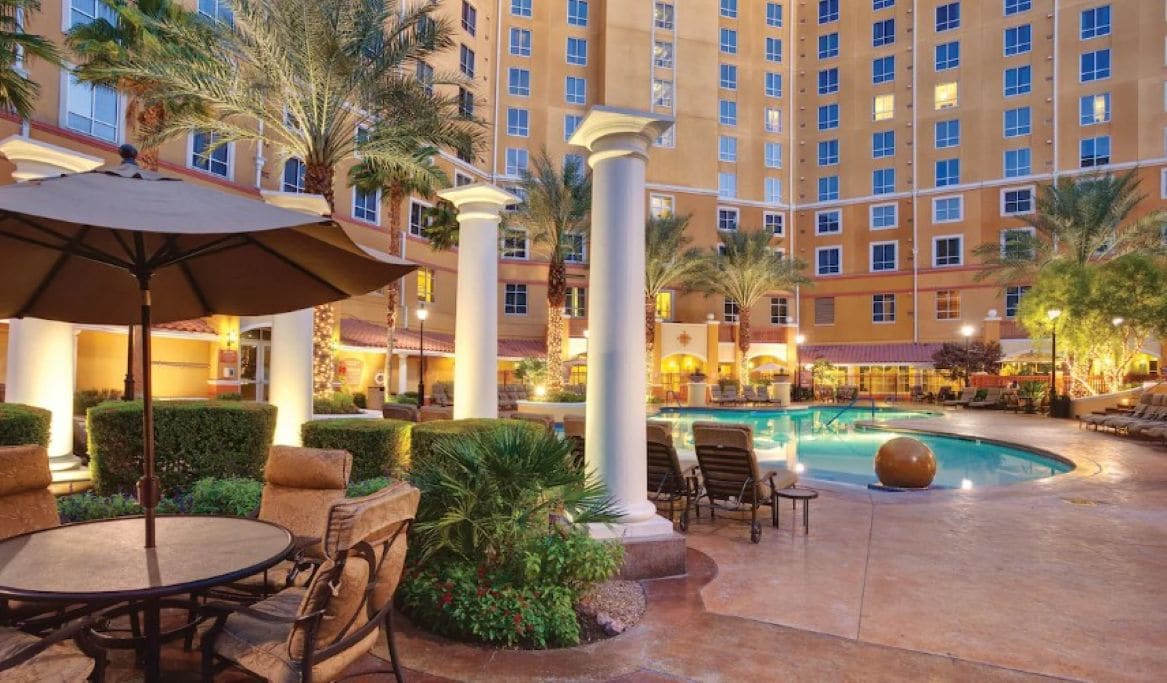 靠近拉斯维加斯大道的绿洲泳池、水疗、桑拿、甲板、扑克