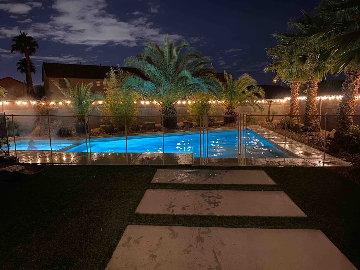 靠近赌城大道的豪华房源!热水浴缸/加热泳池/游戏室!
