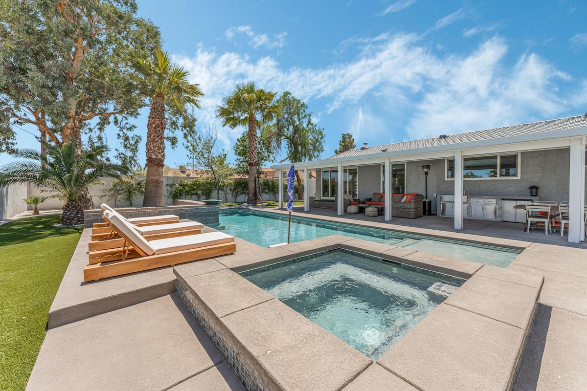✨ Vegas Retreat a true guest favorite near the famous Las Vegas Strip! ✨ Centrally located in the heart of Las Vegas just minutes (10 minutes) from the Famous Las Vegas Strip 10 Minutes from Fremont Street Experience. 15 minutes from the airport Single-Story home, Super Comfy and elegant. Fully Equipped Kitchen Super comfy living room 4 Bedrooms 2-bathroom is perfect for families, groups, or business travelers. 🏊♀️ Private backyard oasis with a sparkling pool and a Hot Tub