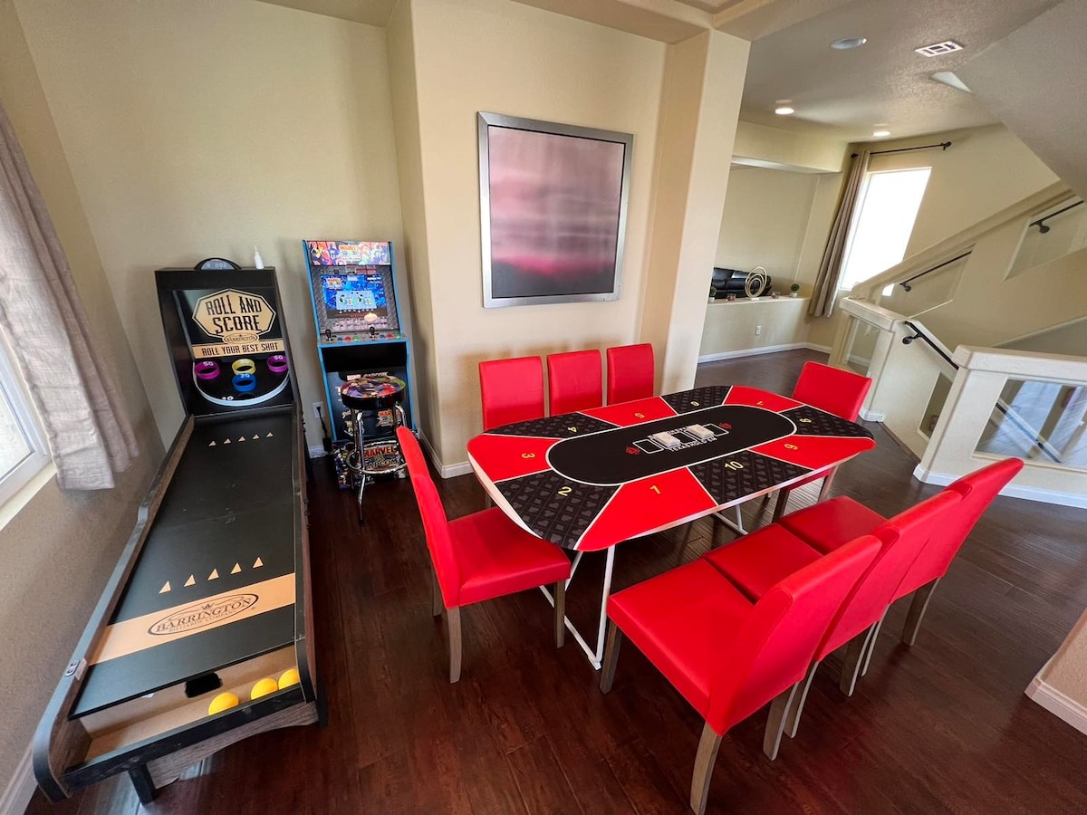 3000+ Sq Ft luxury Brand New home with all new furniture and appliances equipped with essentials for comfortable living in Las Vegas Conveniently located in HEART of Vegas where is a beautiful area right near Walmart, Sam’s & so many coffee/tea/boba store & restaurants; Quick access to 15 and 215 freeway Drive - 7 mins to Allegiant Stadium 10 mins to T-Mobile Arena/Chinatown 15 mins to LAS Airport/STRIP/The New Raider stadium 20 mins to UNLV/Convention center