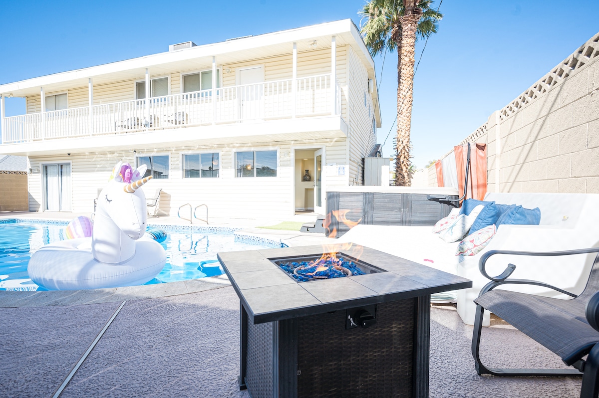 Enjoy lounging outdoors in the shaded cabana or on the hammock, gathering around the fire pits or chilling in the newly remodeled home! Enjoy the heated hot tub & heated spacious pool. Drive times are only 2 min to the Airport, 8 min to the Strip, 12 min to Allegiant Stadium, and 14 min to the Convention Center. The home sleeps 8 comfortably w/ 3 Queen & 1 King bed! Great kitchen, living, laundry, pool, & outdoor space! Ultra fast 1000 Mbps internet. Pet friendly. Smoking outdoors ONLY